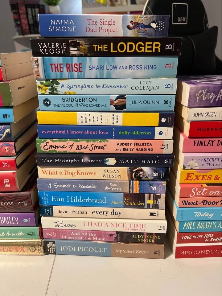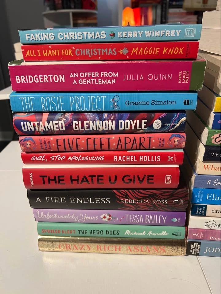 Selling a bunch of books in great used condition. All from a smoke-free home. No writing or highlighting. Lots of romances, BookTok picks, contemporary fiction, and popular backlist titles.