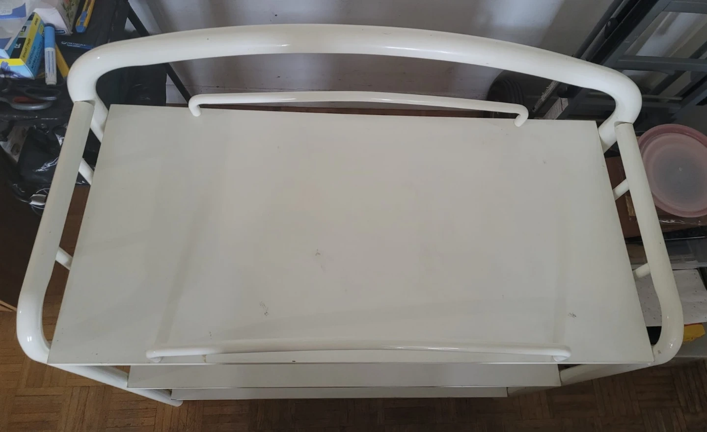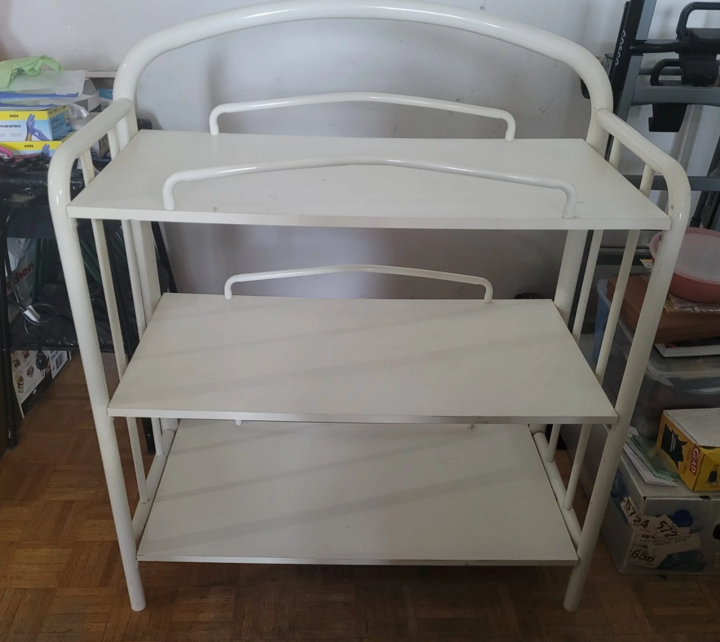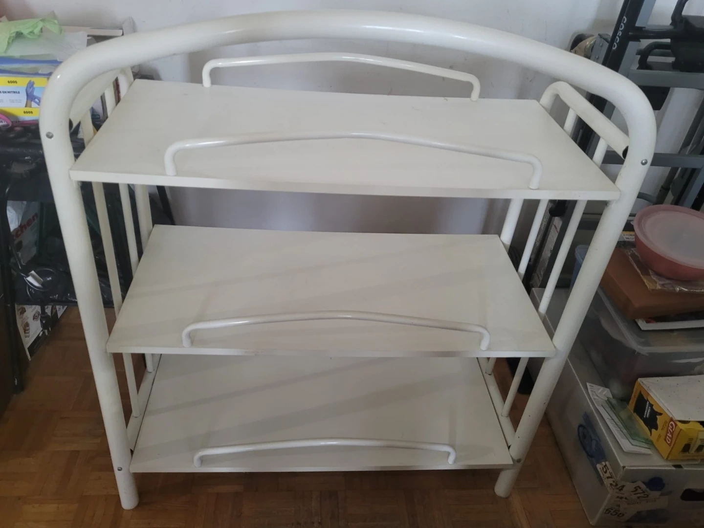 Baby changing table Metal frame, white. Pet & smoke free home. W - 90cm = 35.5" D - 40cm = 15.75 H - 108cm = 42.5"