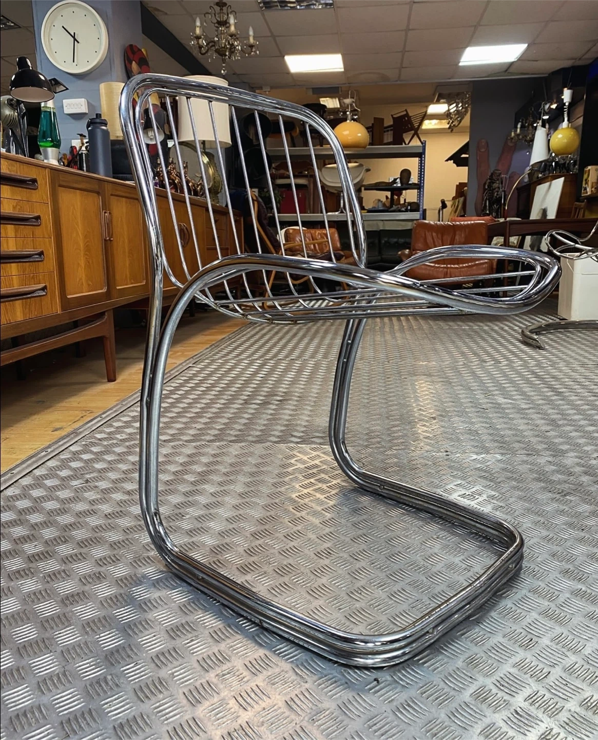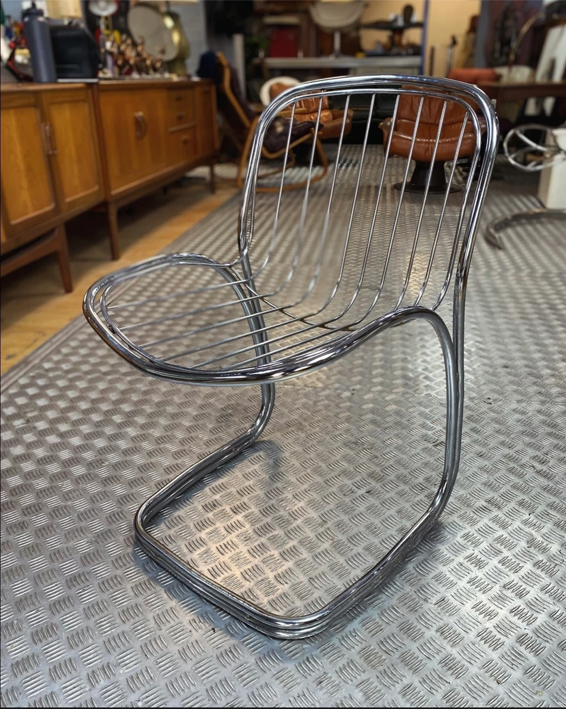 Mid century chrome cantilever chair designed by Gastone Rinaldi