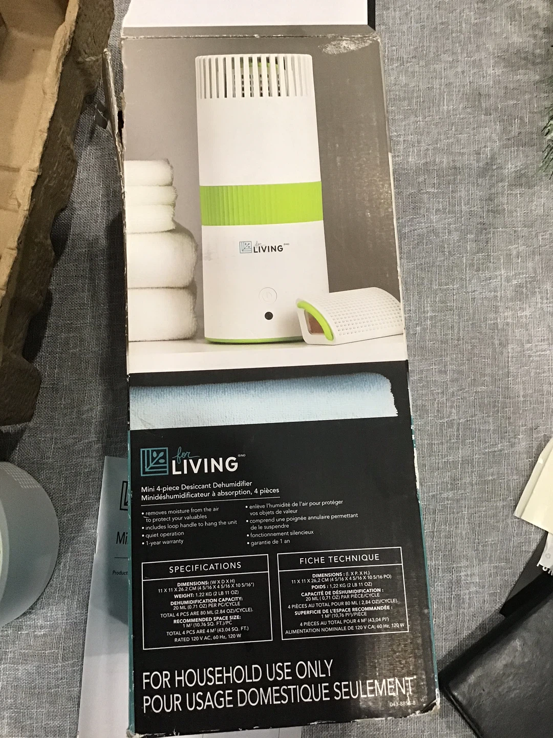 Selling a for LIVING Mini 4-piece Desiccant Dehumidifier. It removes moisture from the air.The box is included!