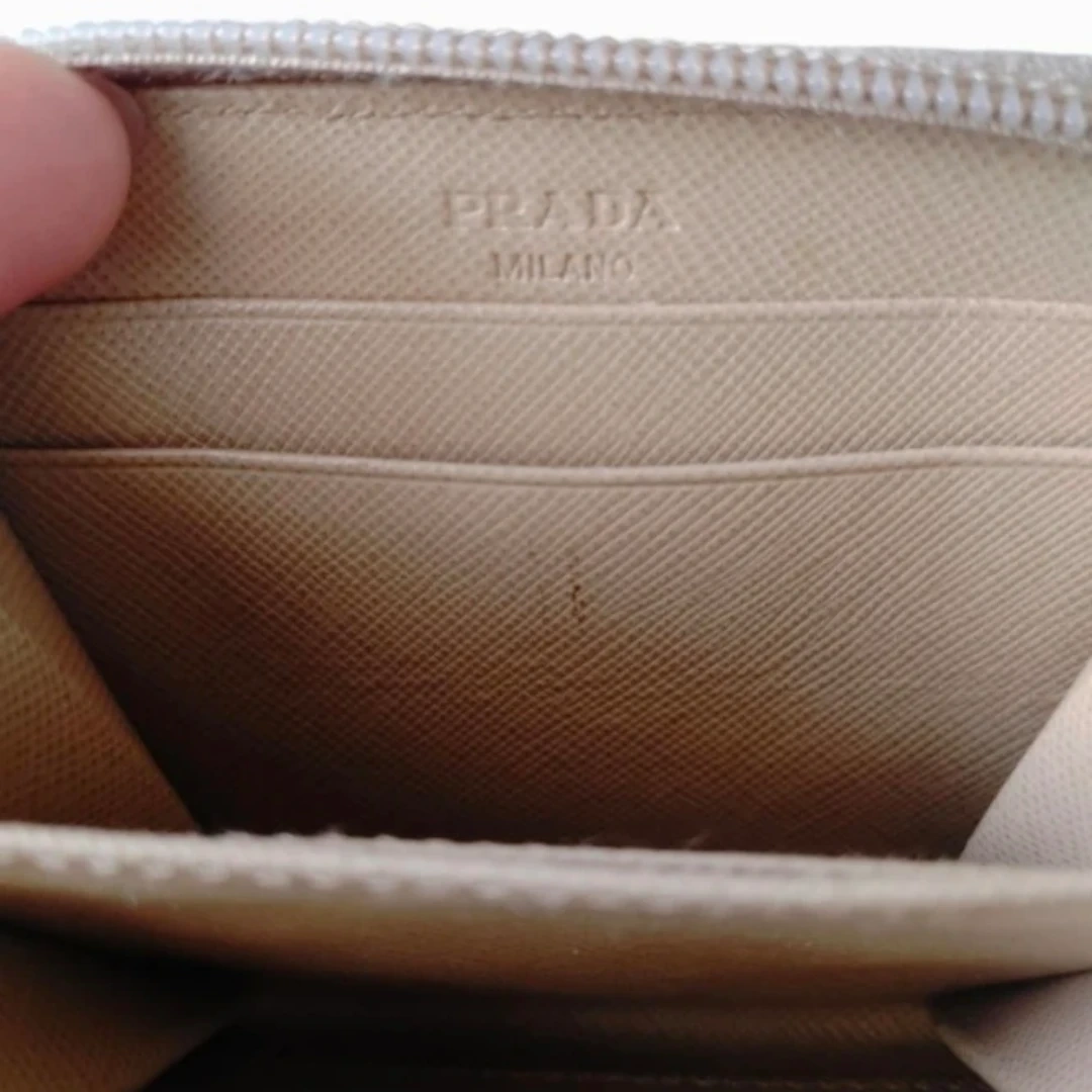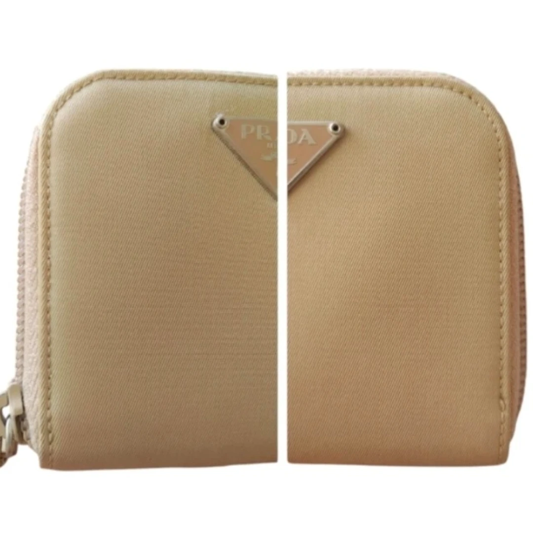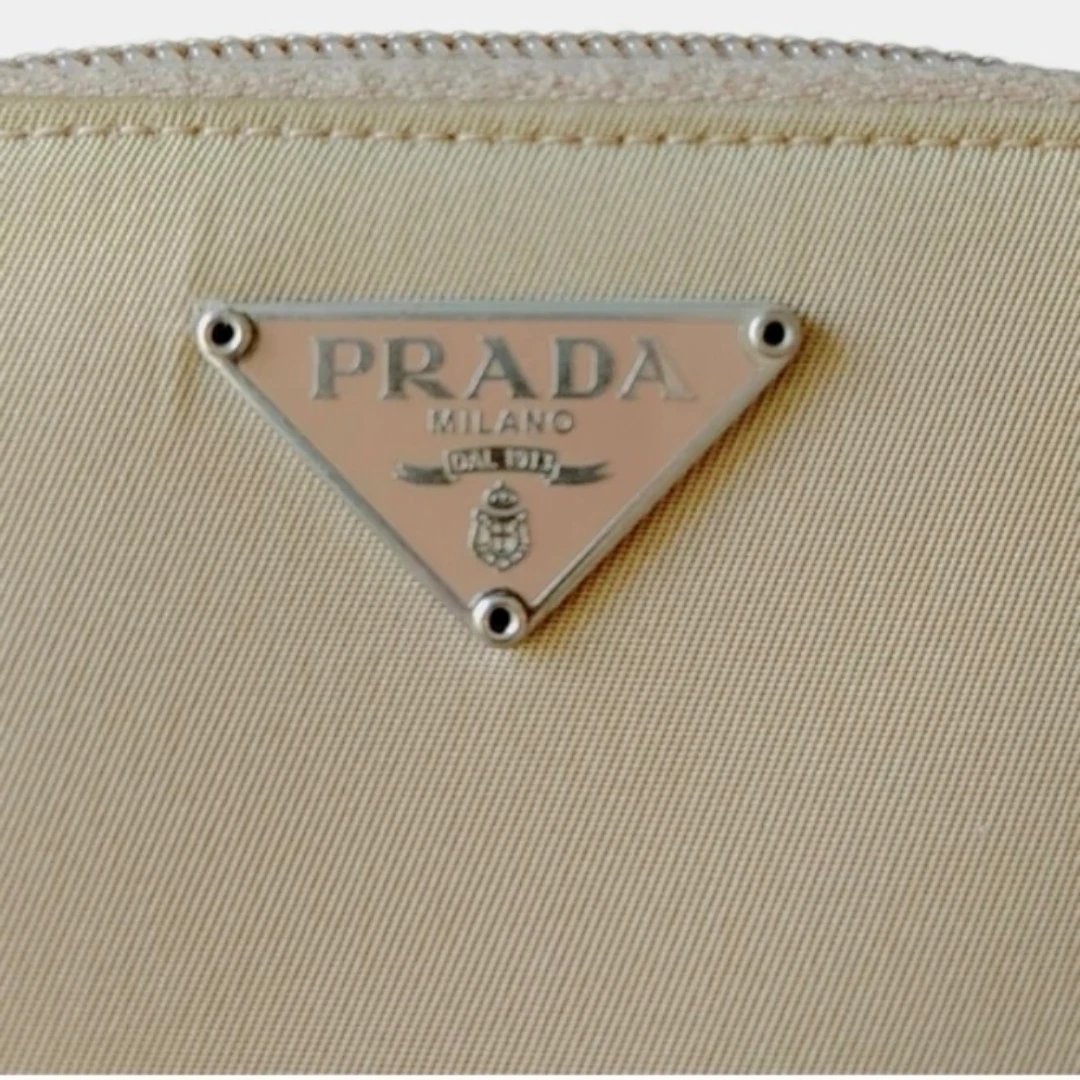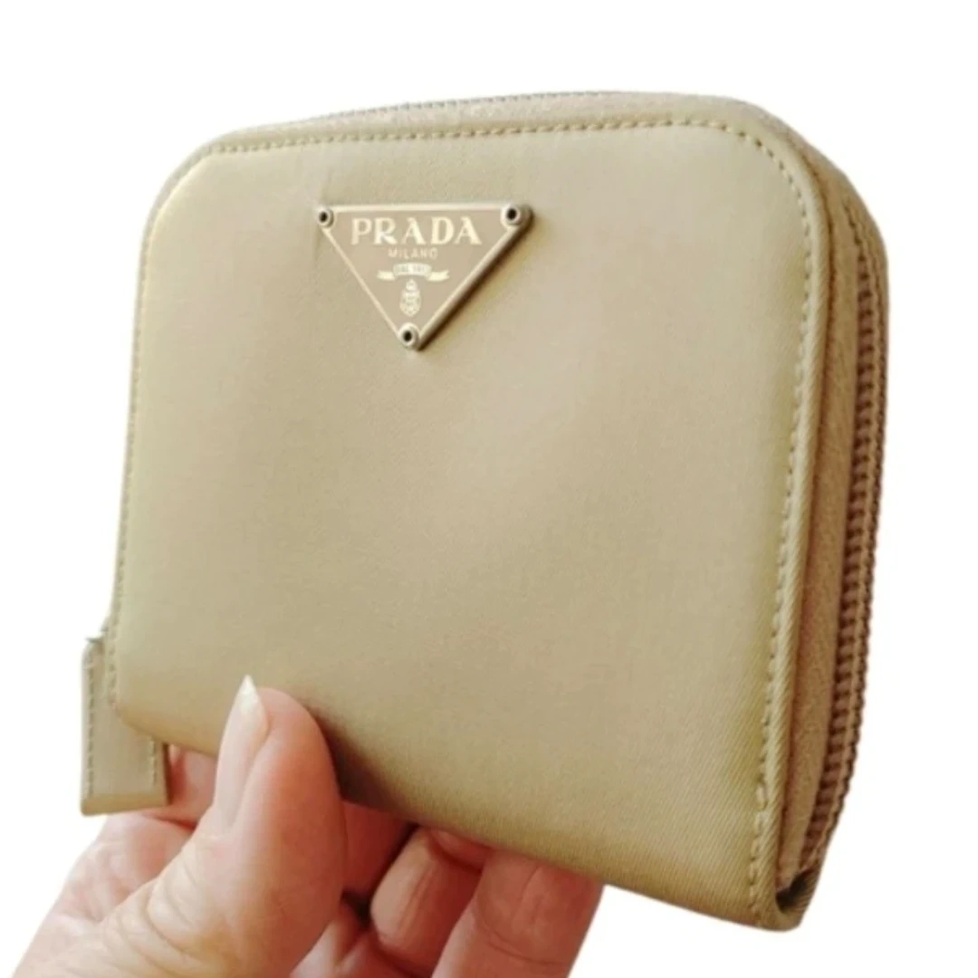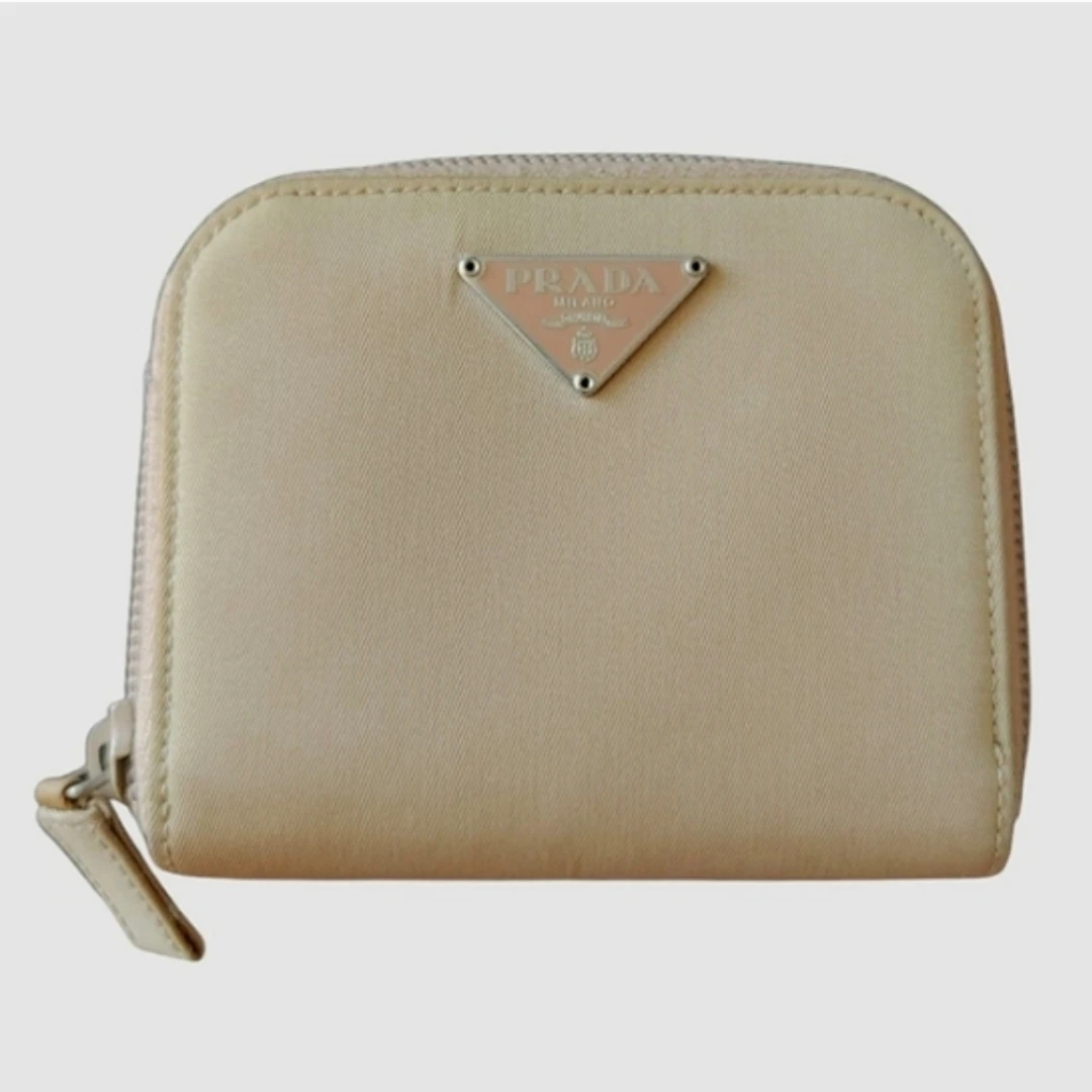 Authentic Prada Cream Nylon Compact Zip Wallet.