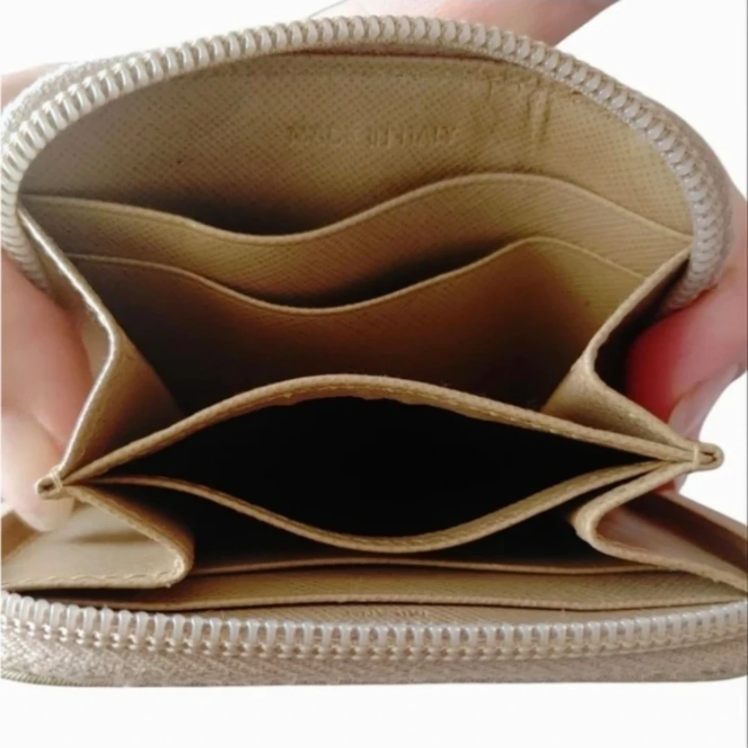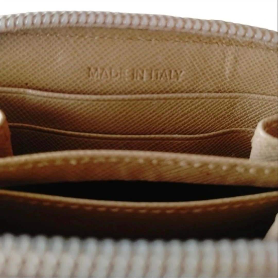 Details: Zip around closure. Silver hardware. The interior is leather lined with 5 card slots. Body: Nylon. Made in Italy.