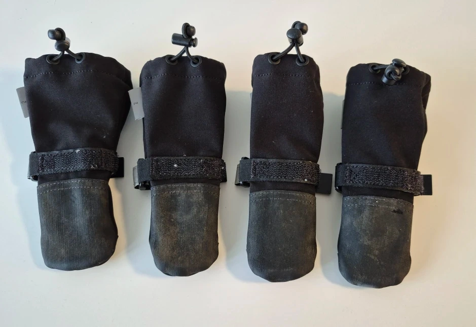 These long boots are designed for secure paw protection.