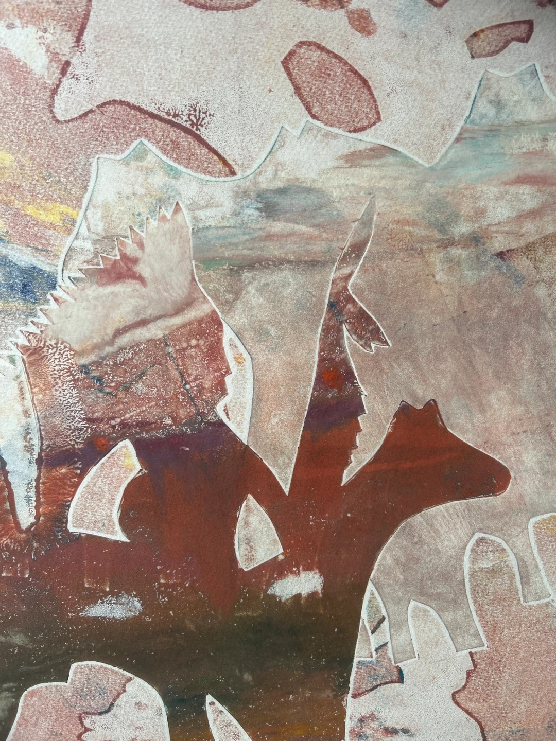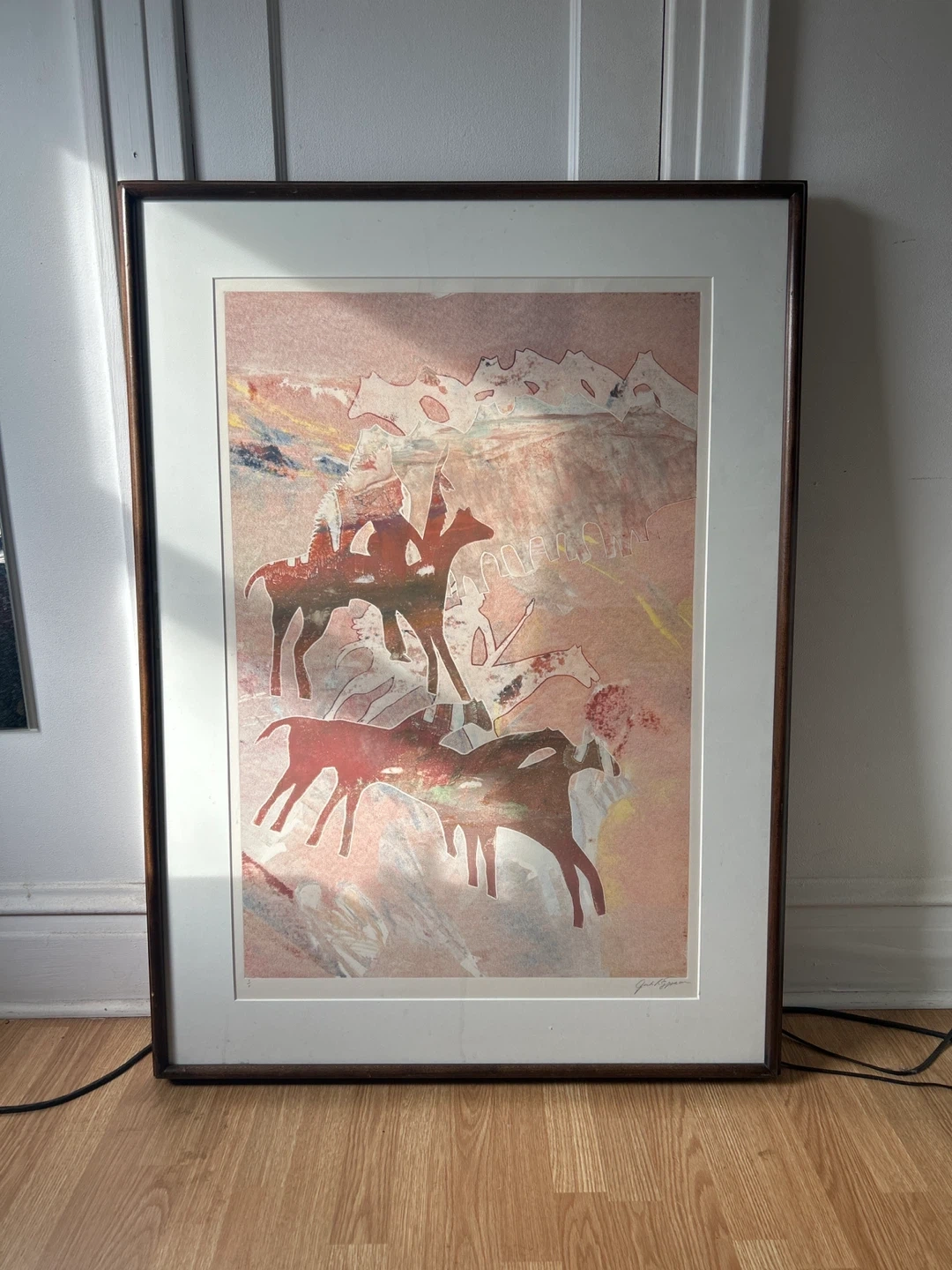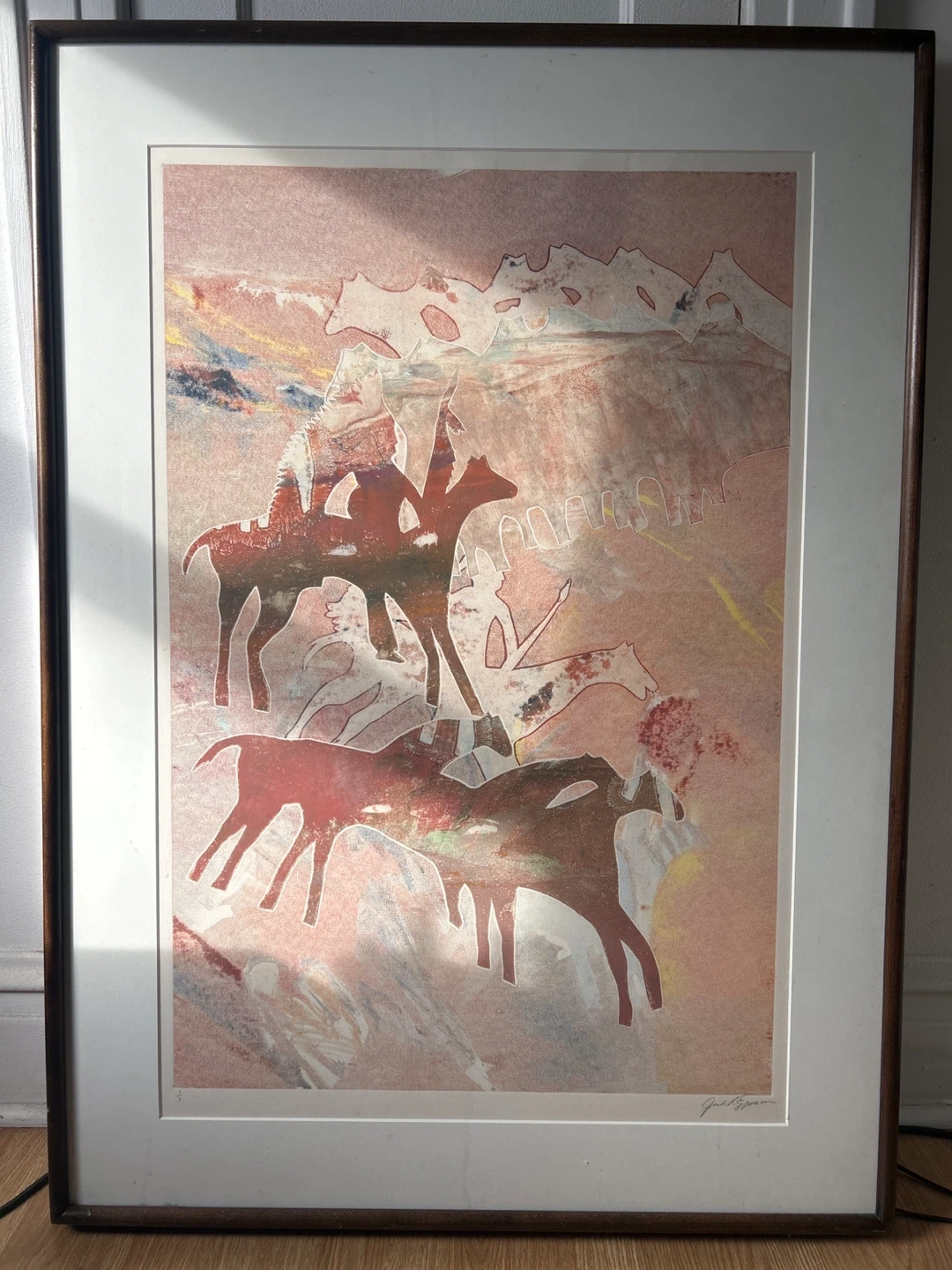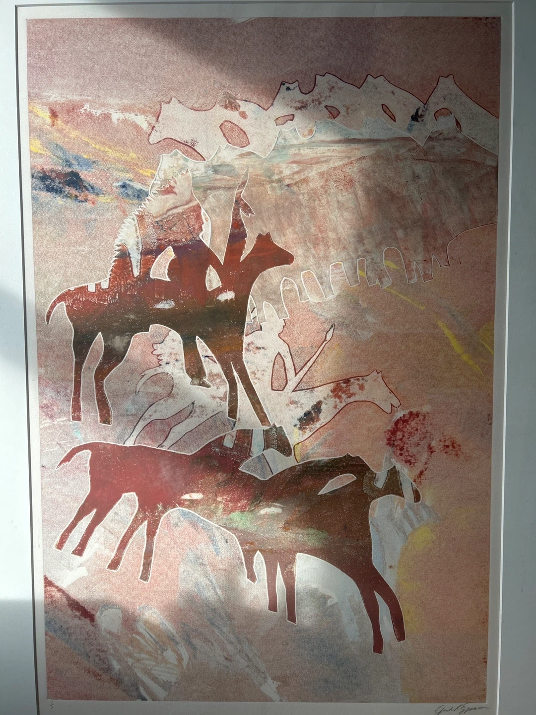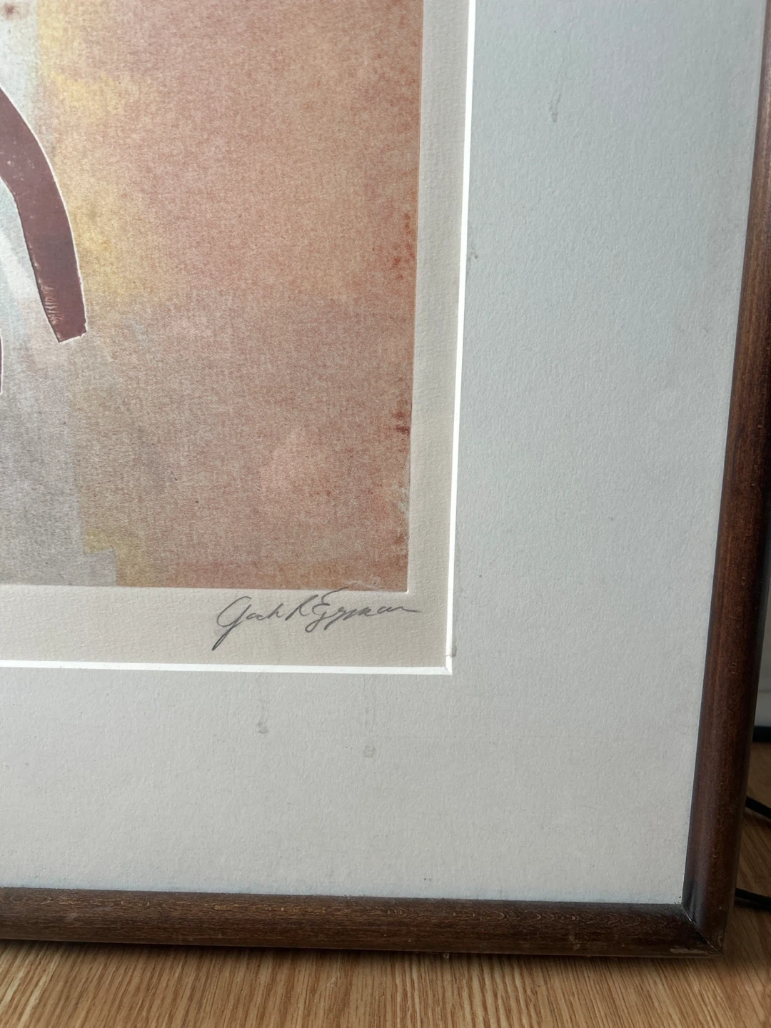 Jack Eggman is a third generation Amazonian. After being educated in Tucson schools and serving in the Army Jack attended Pima Community College majoring art. Jack Eggman has his work in Museums as well as private collections. This beautiful original multimedia artwork consist of copper -multiple colors on paper (not canvas).