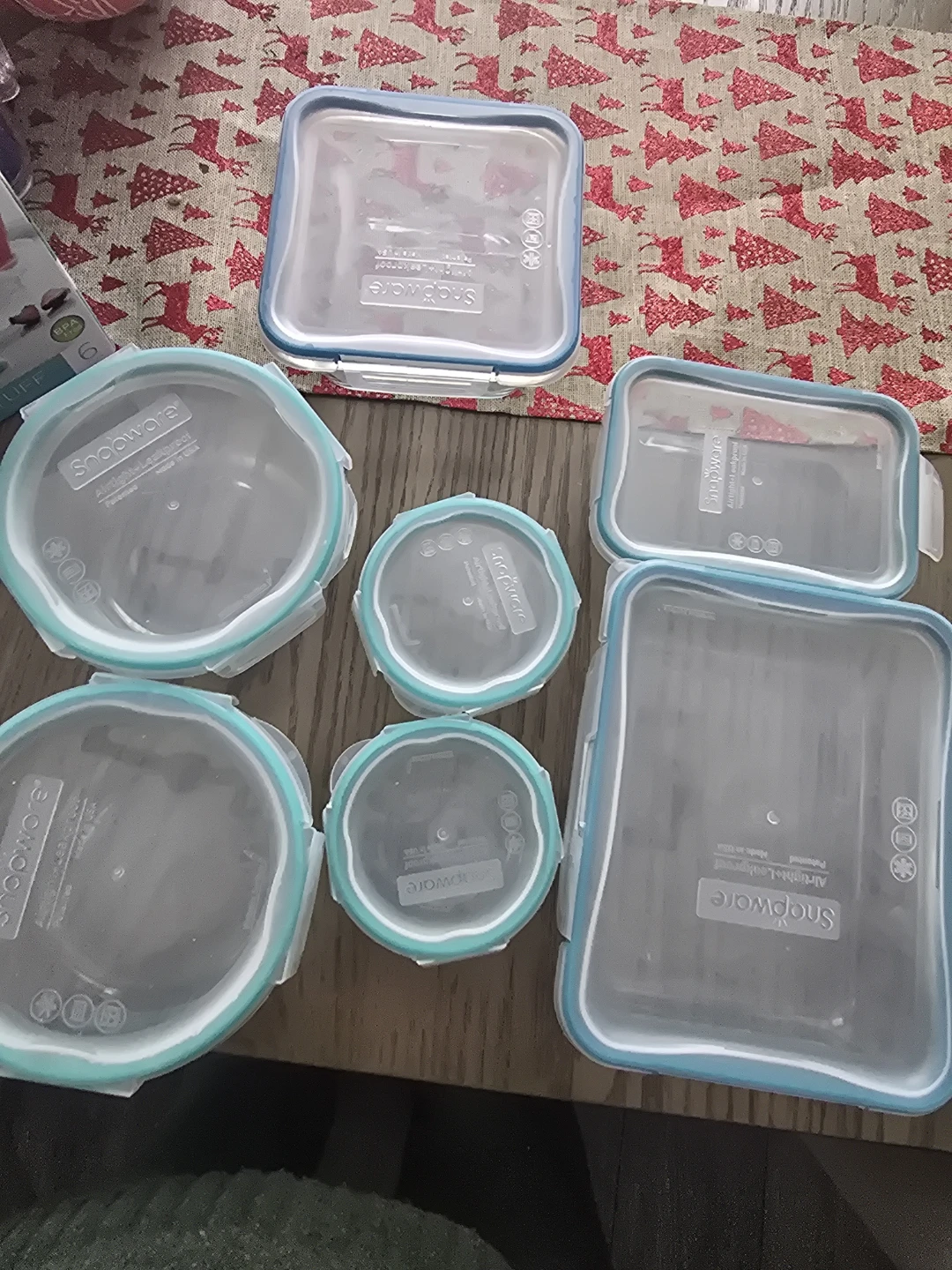 Selling a set of 7 Snapware food storage containers. They're airtight and leakproof, perfect for keeping your food fresh! Includes a variety of shapes and sizes.