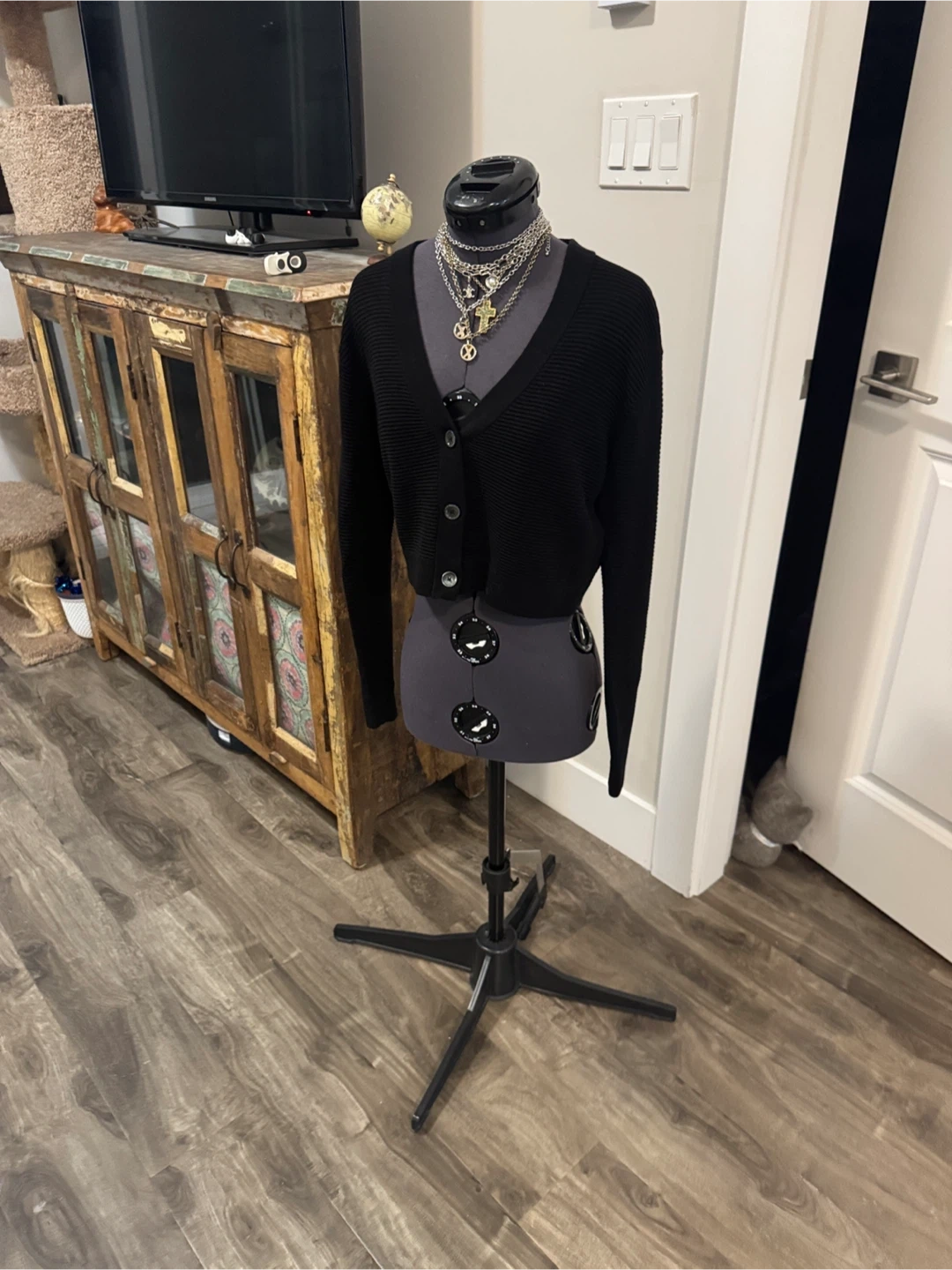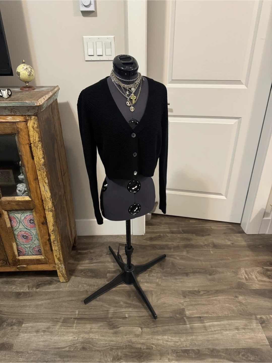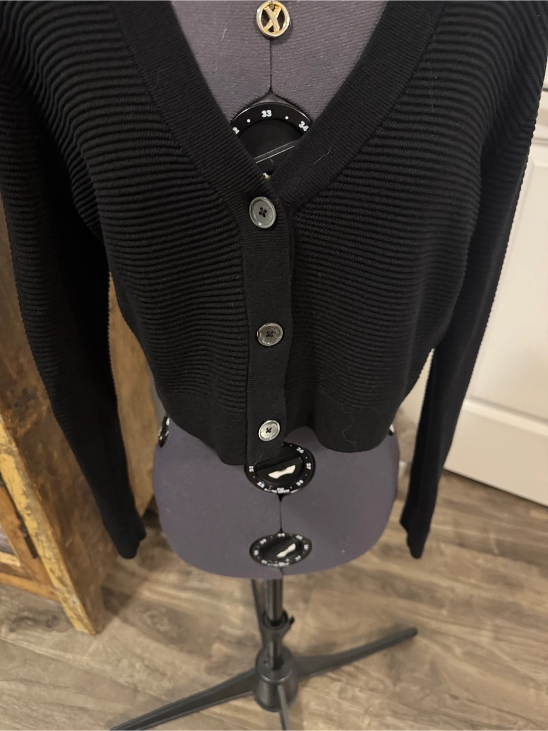 Chic black cardigan by Wilfred. Features a button-up front. Perfect for layering. Fits true xs. Good used condition just too small. Bundle & save