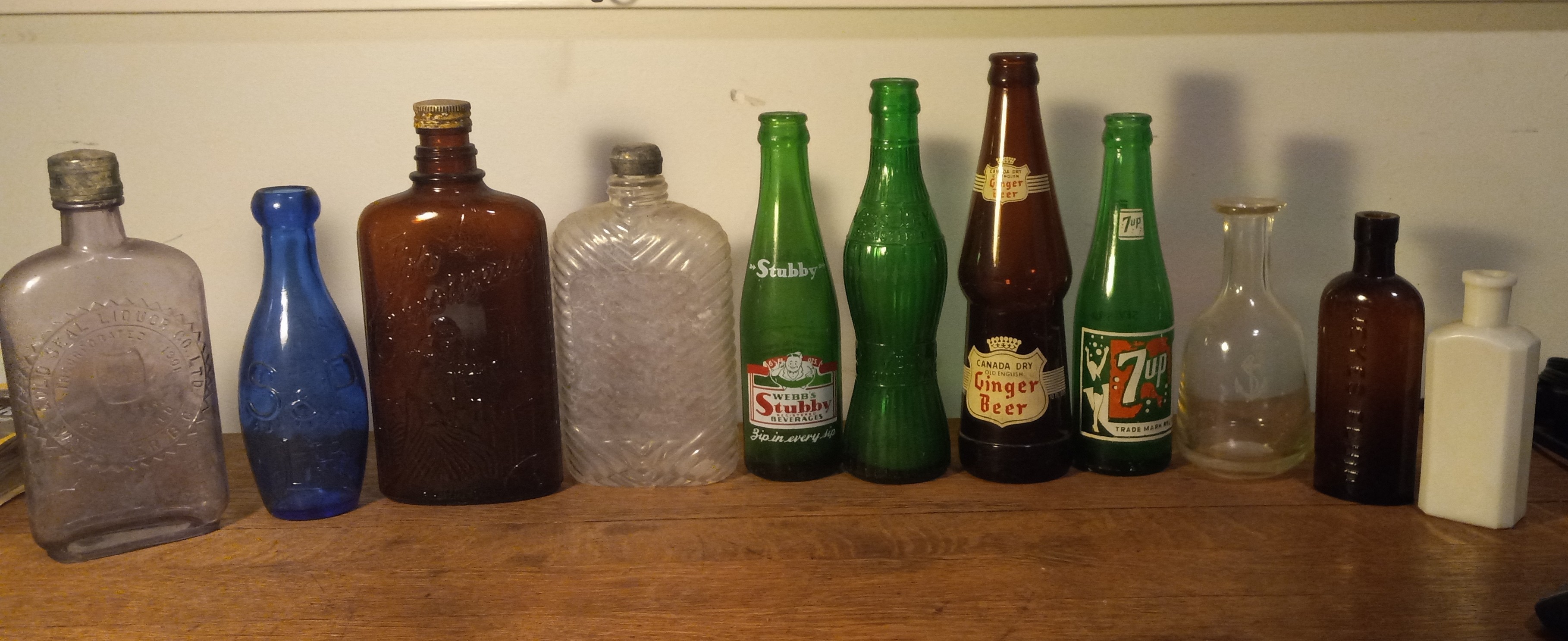 Green bottle with narrow waist is Vess Dry Ltd. (it would be interesting to know what it tasted like).