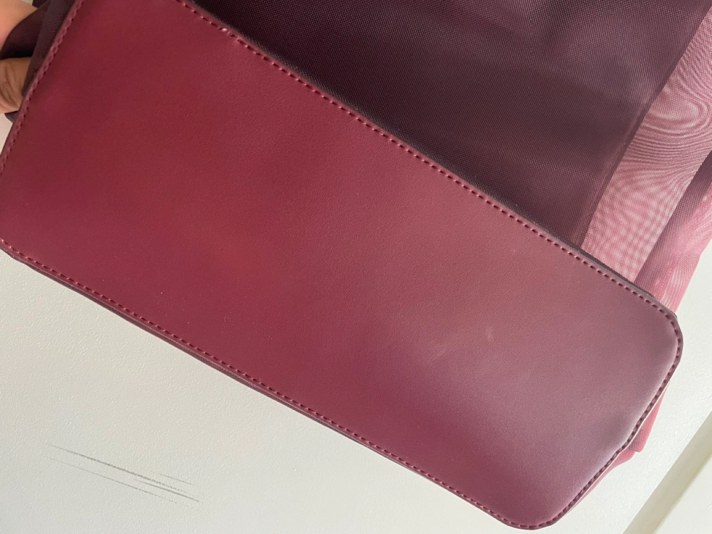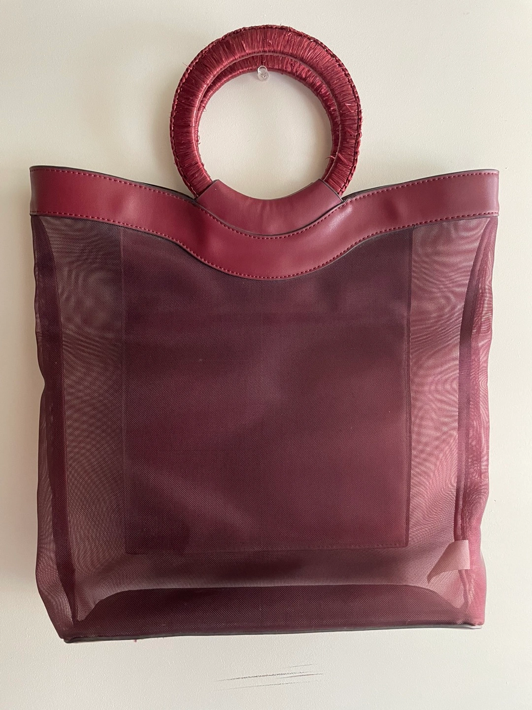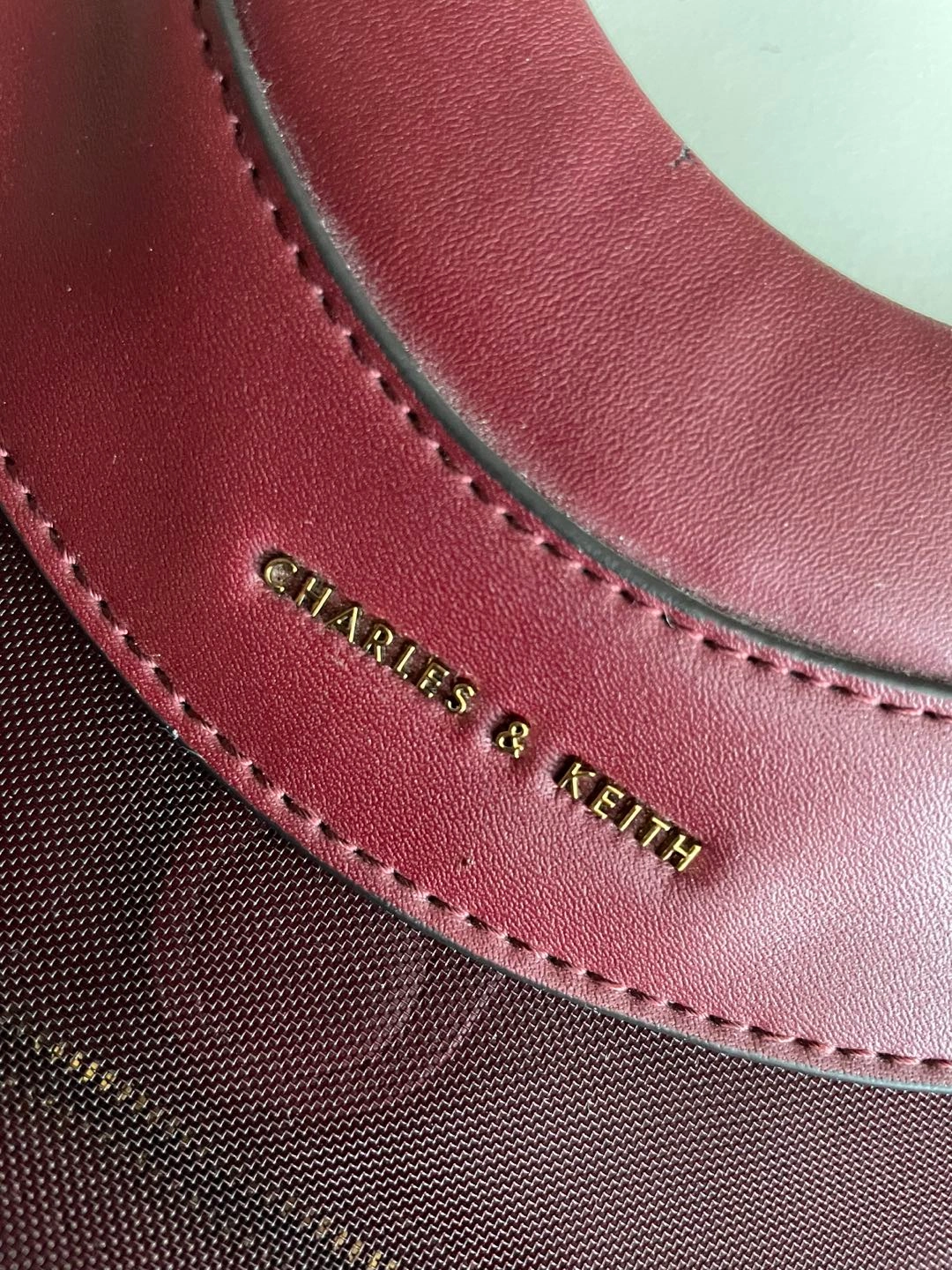 CHARLES & KEITH Mesh-Layer Front-Logo Magnetic-Closure Circular Top-Handle Tote Bag for Women - Burgundy.
