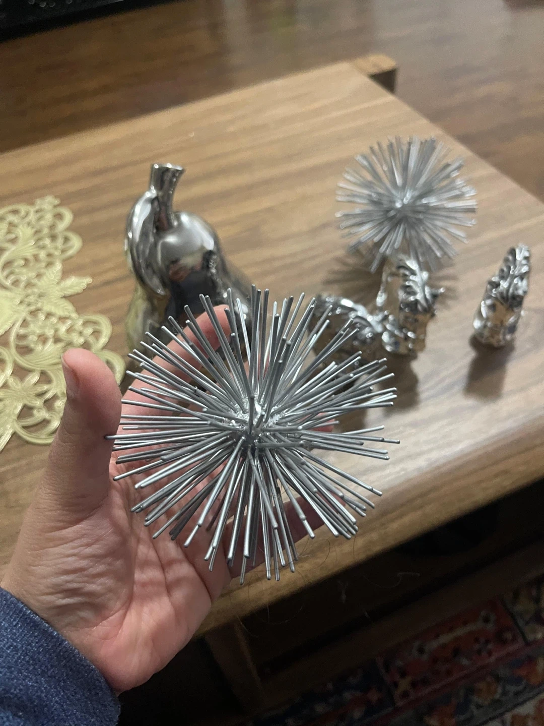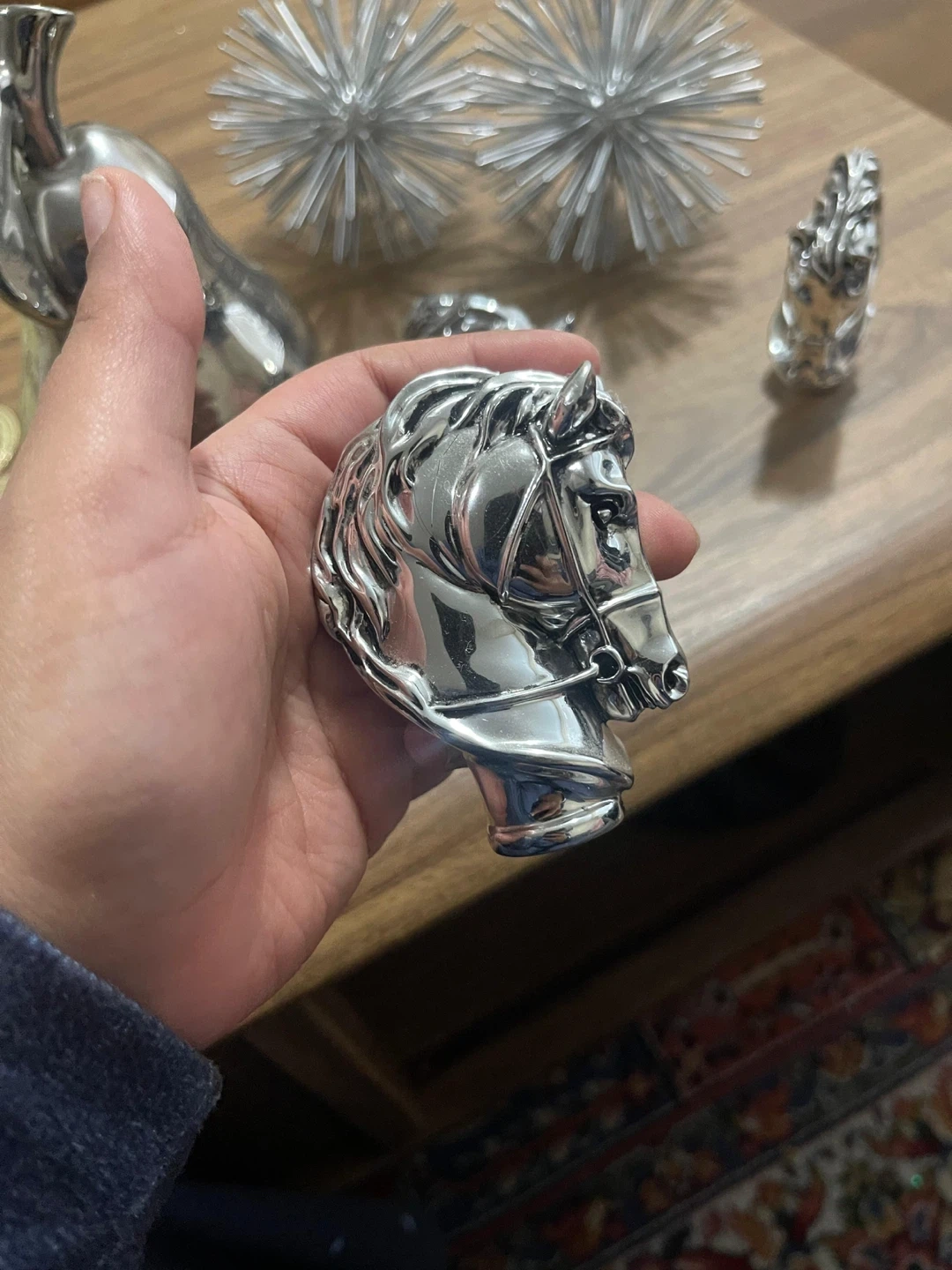 Silver Home Decor Items: Pear, Spike Ball, Horse Heads