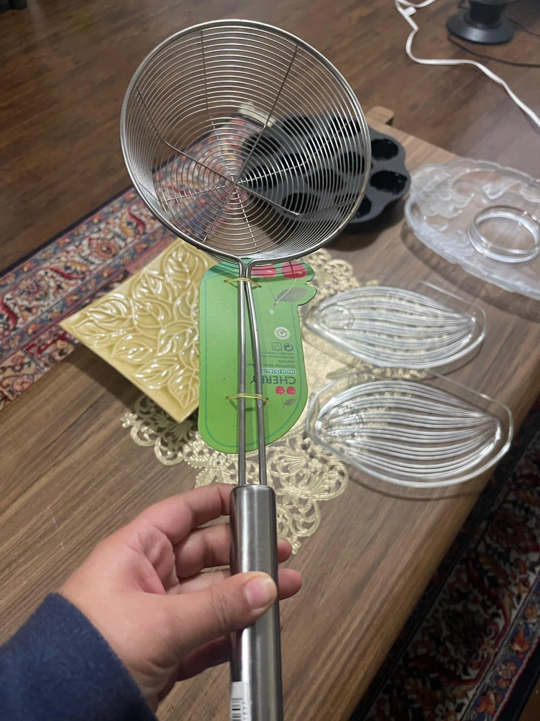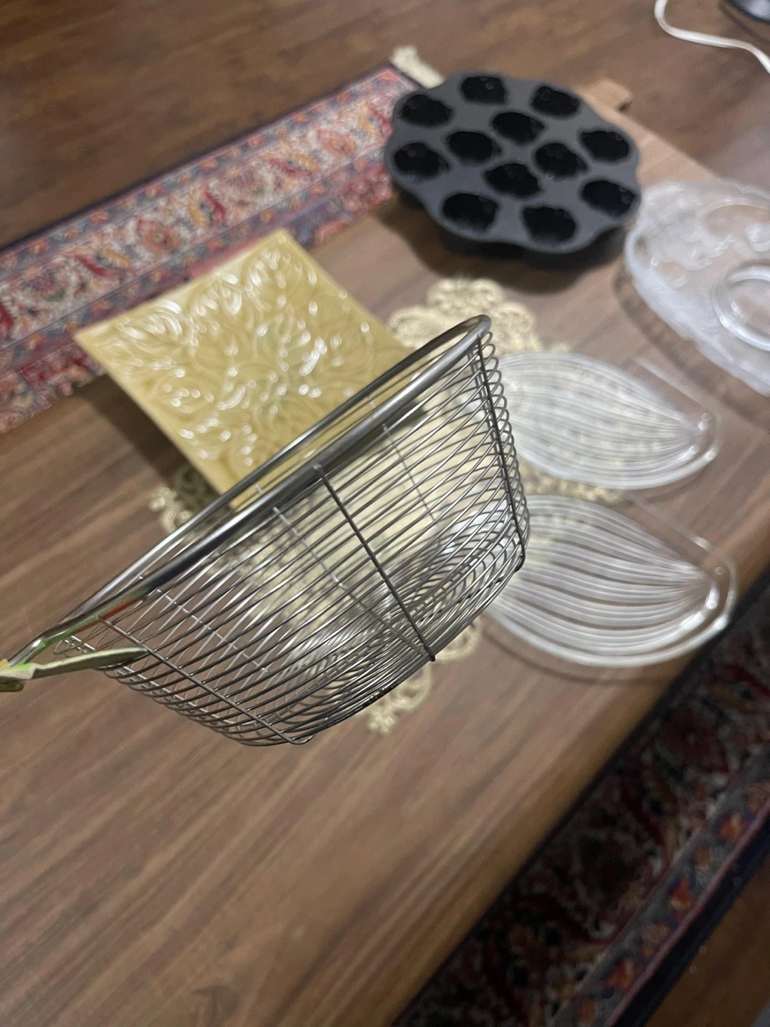 Moving Sale - Selling a variety of kitchen items including a rose-shaped muffin pan and a stainless steel strainer. They are in good condition!
