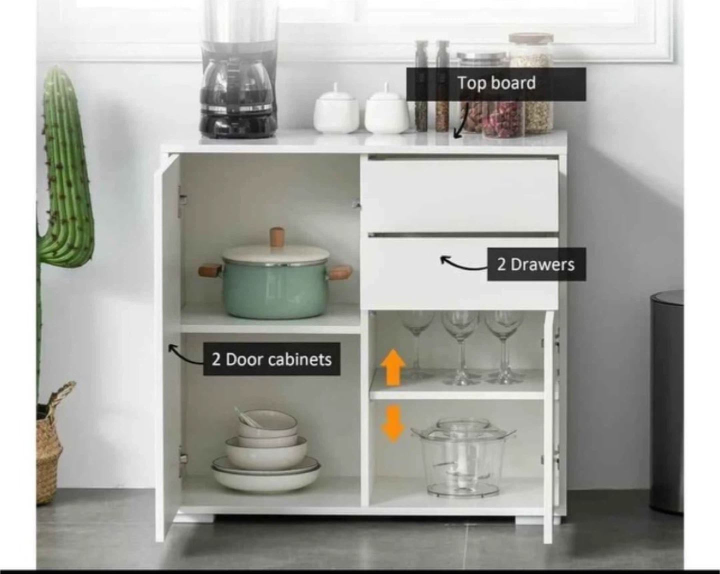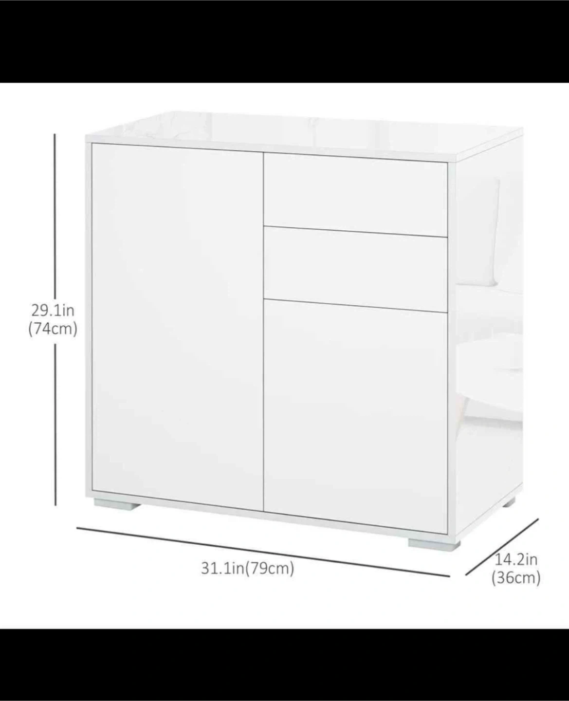 Selling a white cabinet that's in great shape! It features a door cabinet and two drawers, perfect for extra storage.