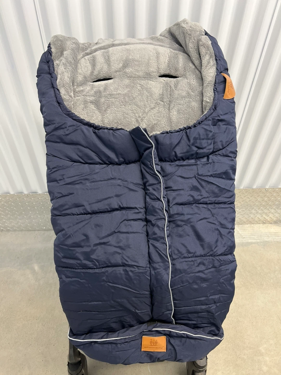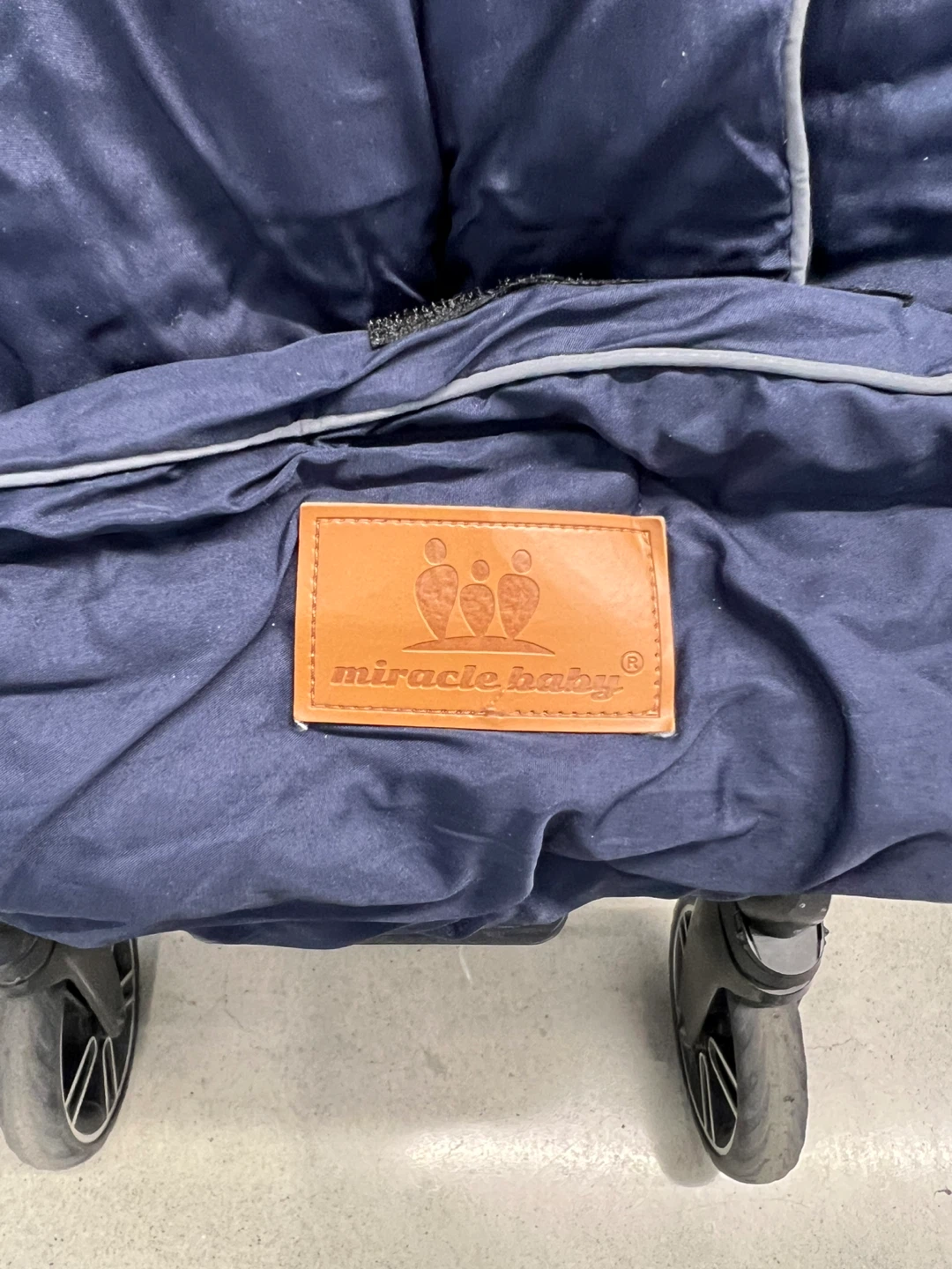 Keep your little one snug and warm with this Miracle Baby stroller sleeping bag! It's a cozy navy blue and in great condition. Perfect for those chilly walks!