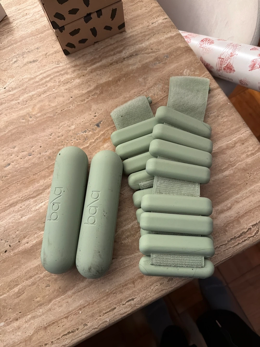 Free set of Bala bangles and bars in a light green color. They show some signs of use, but are still in good condition and ready for your next workout! Comes with the original box