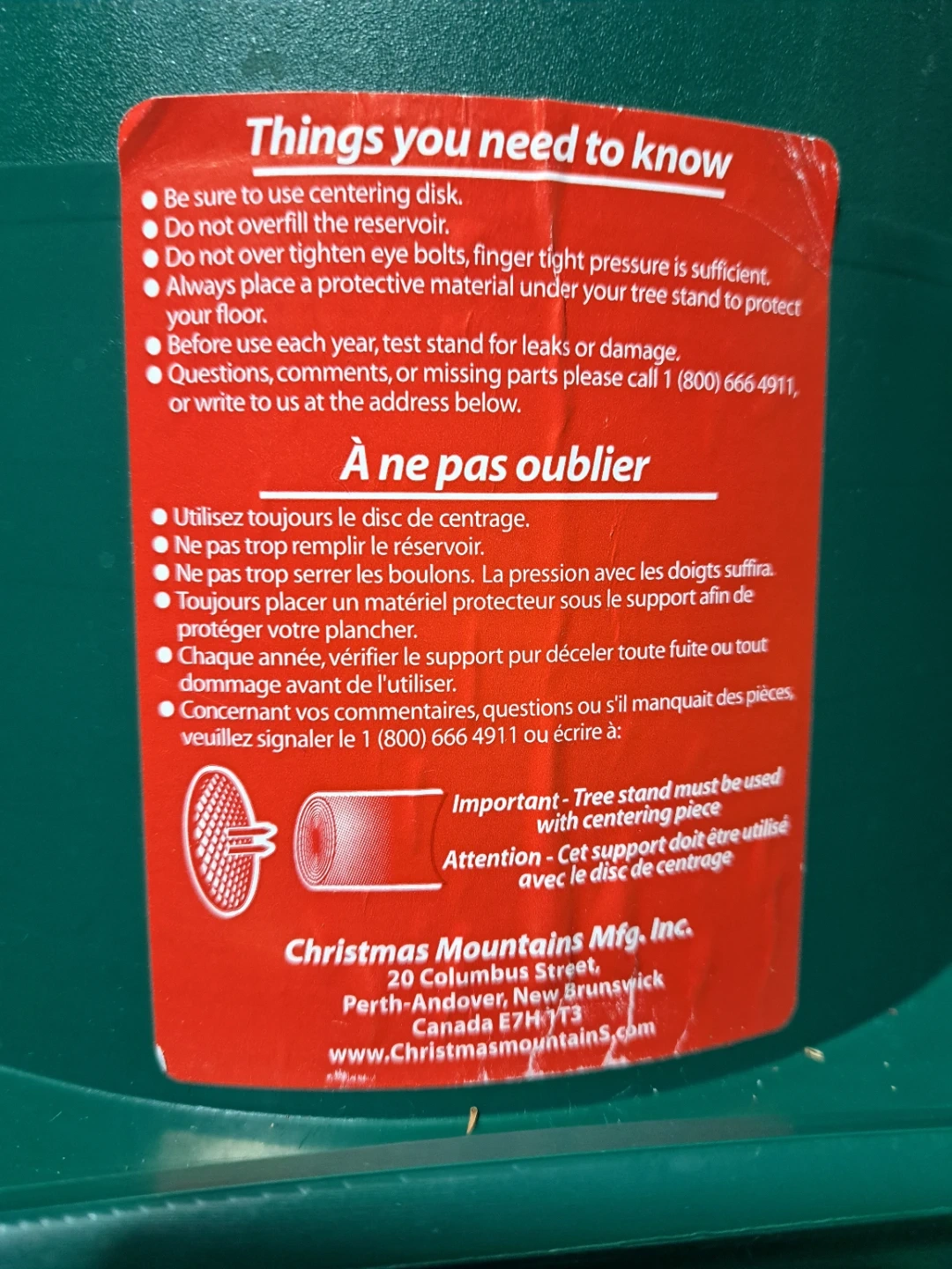 Selling a Christmas Mountains Christmas tree stand! It has never been used and ready to hold your tree securely this holiday season. The stand features a reservoir to keep your tree hydrated and comes with all the necessary hardware. The 4th bracket is there but not in photo.