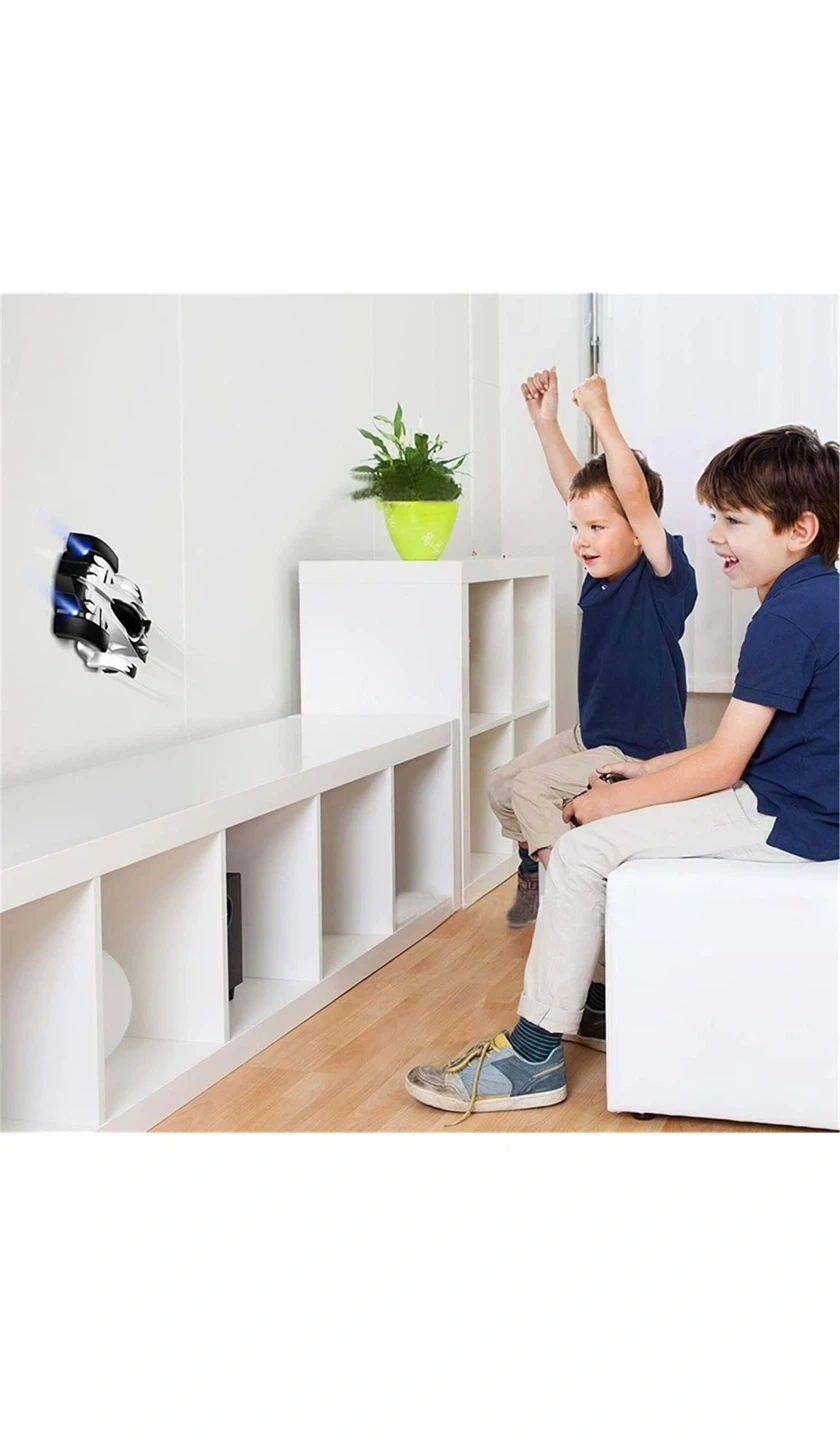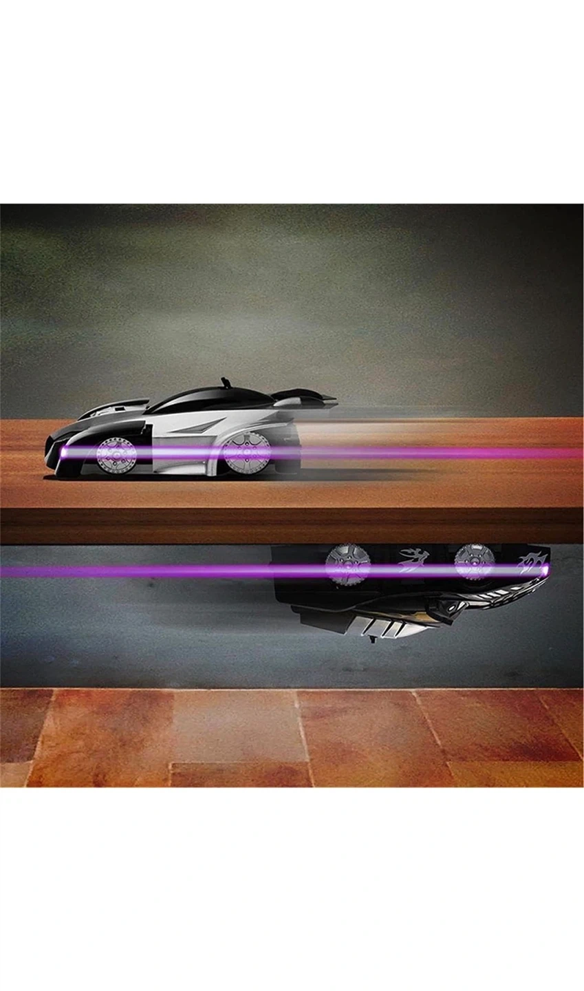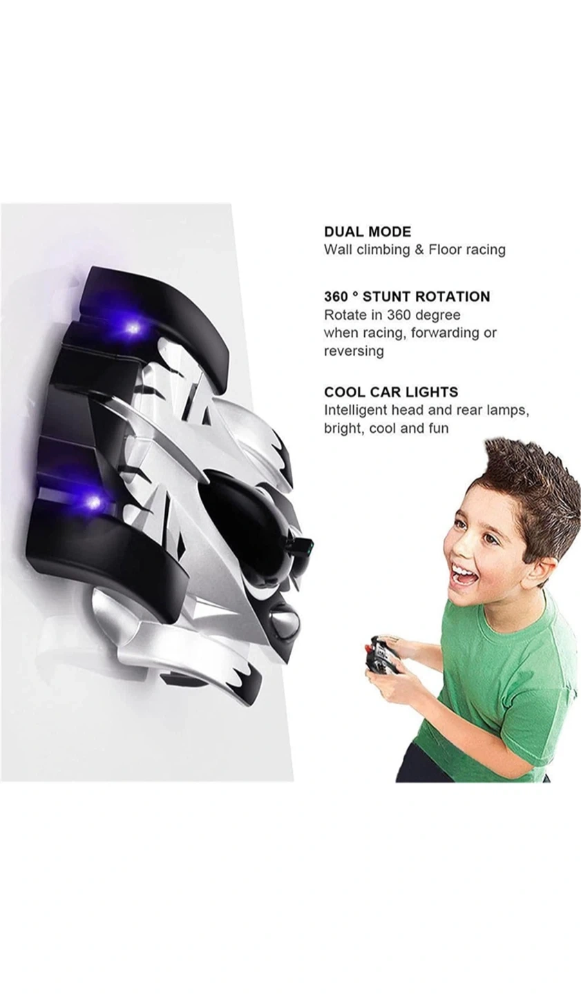 Check out this cool wall climbing RC car! It has a dual mode for wall climbing and floor racing. It can rotate in 360 degrees when racing, forwarding, or reversing. The car also features intelligent head and rear lamps that are bright, cool, and fun