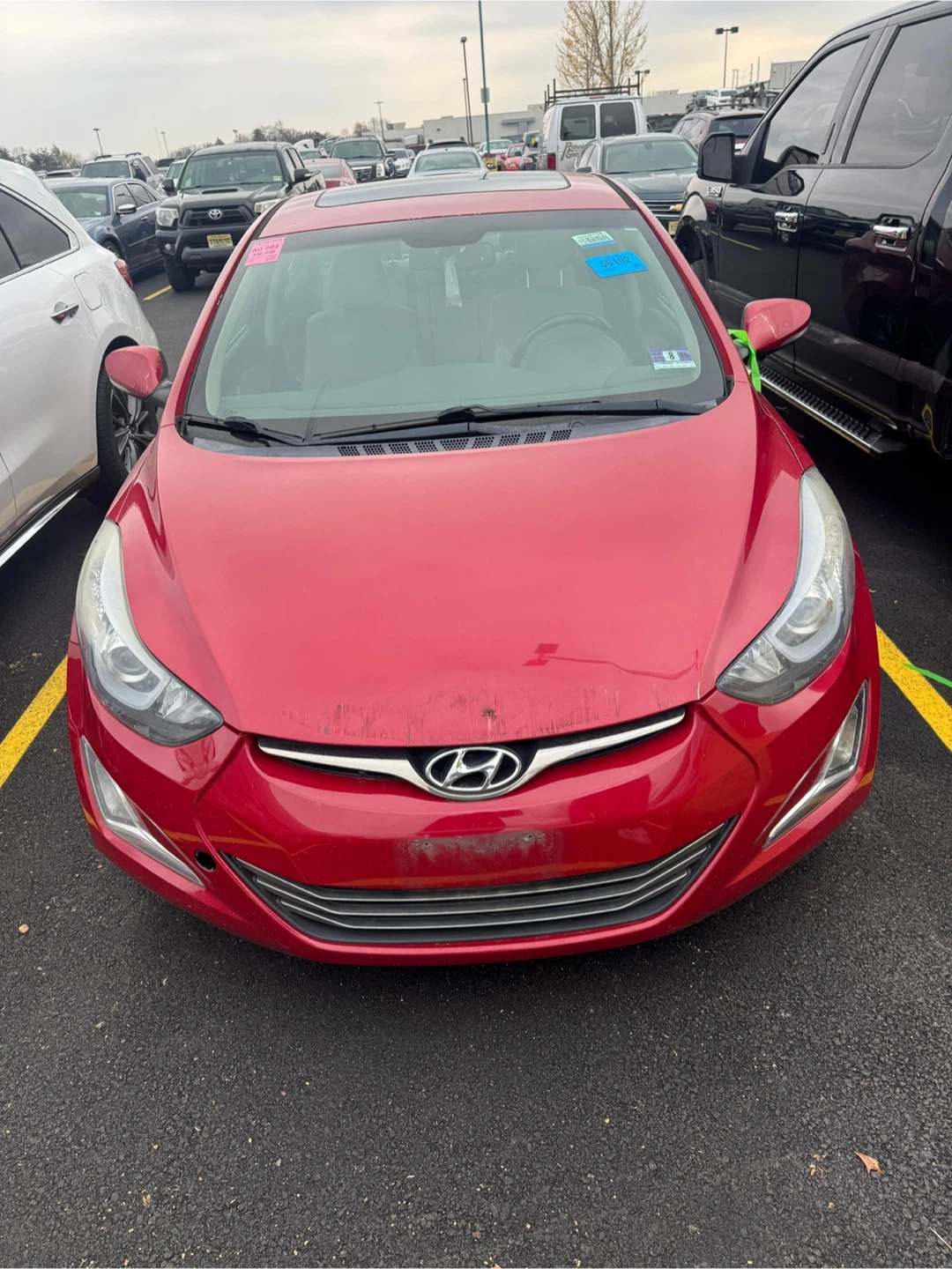 Selling a red Hyundai Elantra Limited sedan. It has some wear and tear, but it's ready for a new owner. 9172646429 escríbeme
