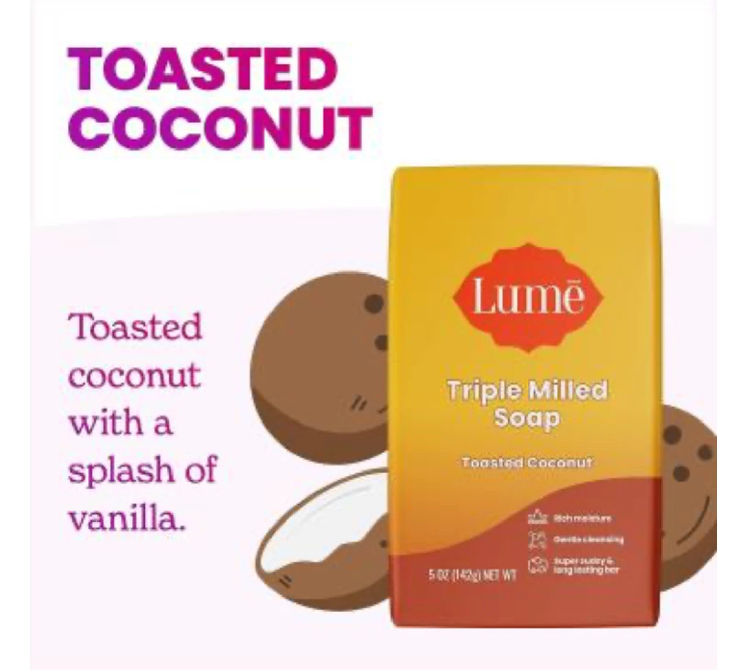 New Lume Toasted Coconut Triple Milled Soap 5oz