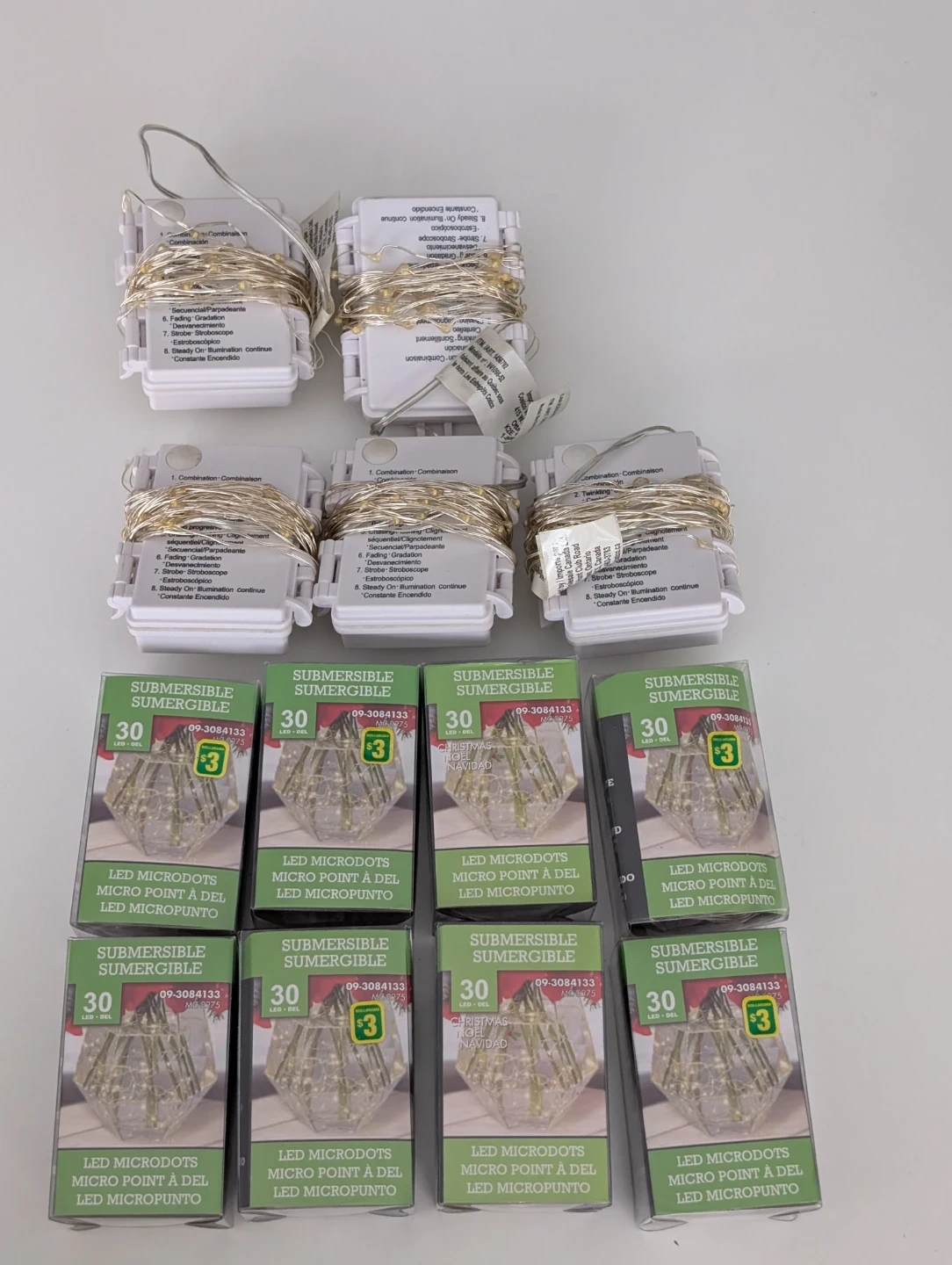 I have several boxes of new LED microdot submersible string lights for sale! Each box contains 30 LED lights. Great for adding a touch of sparkle to your home or garden. They are submersible, so you can use them in water features too! Each box was originally $3.