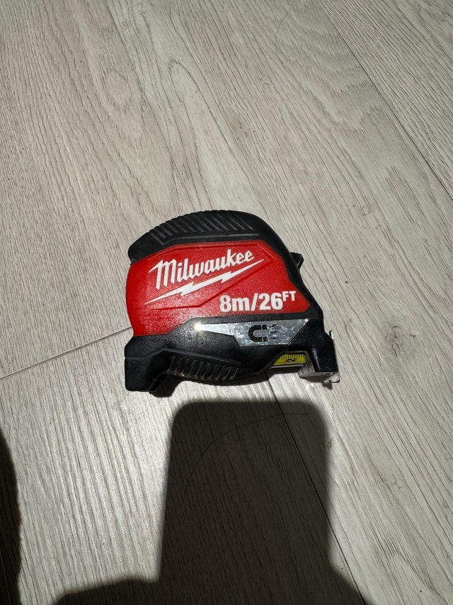 This Milwaukee 8m/26ft tape measure is a reliable tool for any job! This item is used, but is in good working condition. I'm decluttering my tools, so here's a chance to snag a quality tape measure for a great price. * Length: 8 meters / 26 feet * Brand: Milwaukee * Compact design If the ad is up, it's still available. Check out my other posts for electrician tools