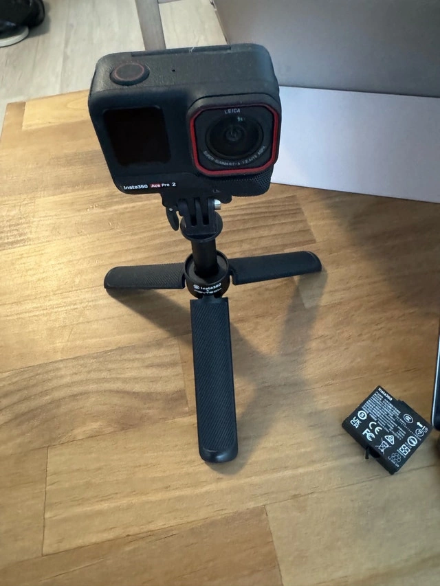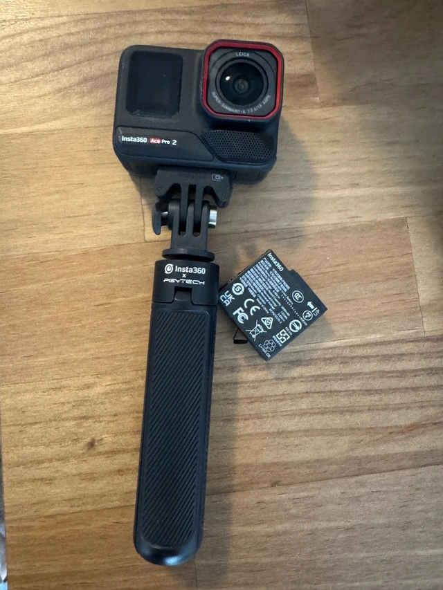 Insta360 Ace Pro2 action camera, perfect for capturing all your adventures in stunning detail. This action camera has Leica optics, an extra battery and a mini tripod. This setup ensures you're always ready to film, even on longer excursions. The camera is in good condition, ready for its next adventure. I am asking $400 for this set, which reflects its excellent condition and the inclusion of the extra battery. If the ad is up, it's still available.