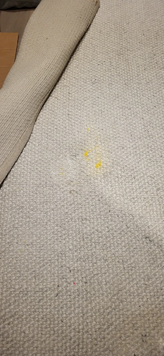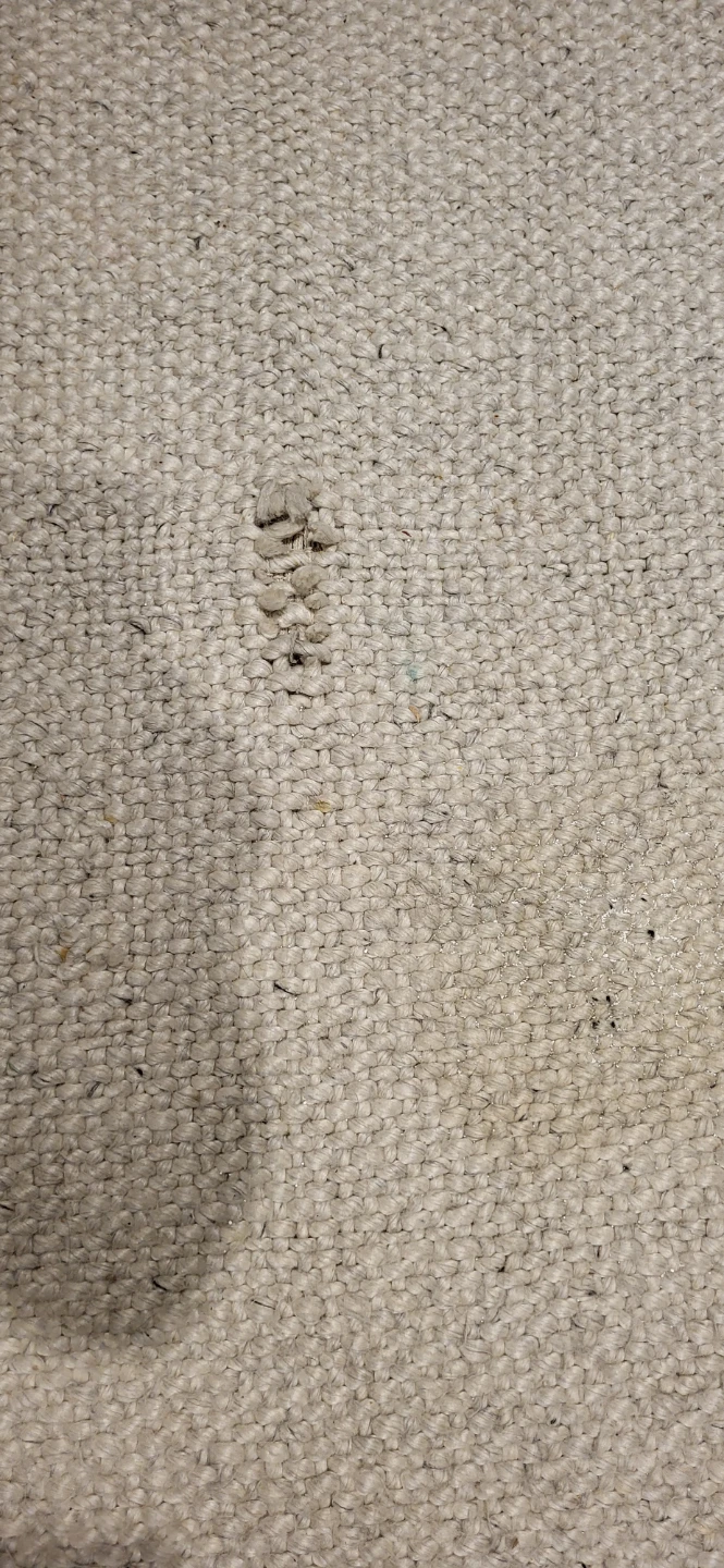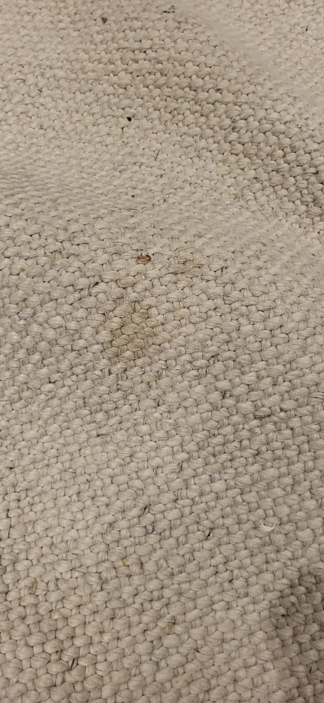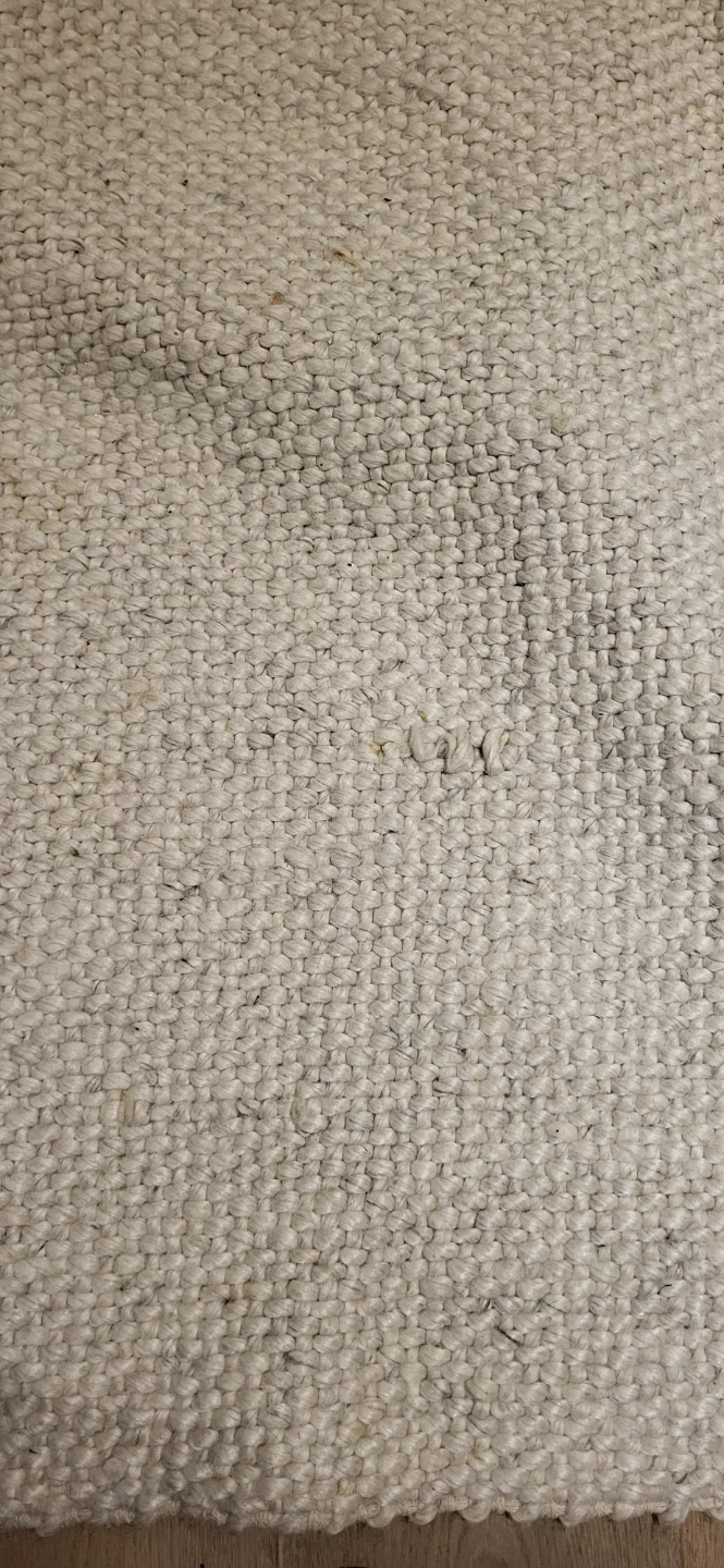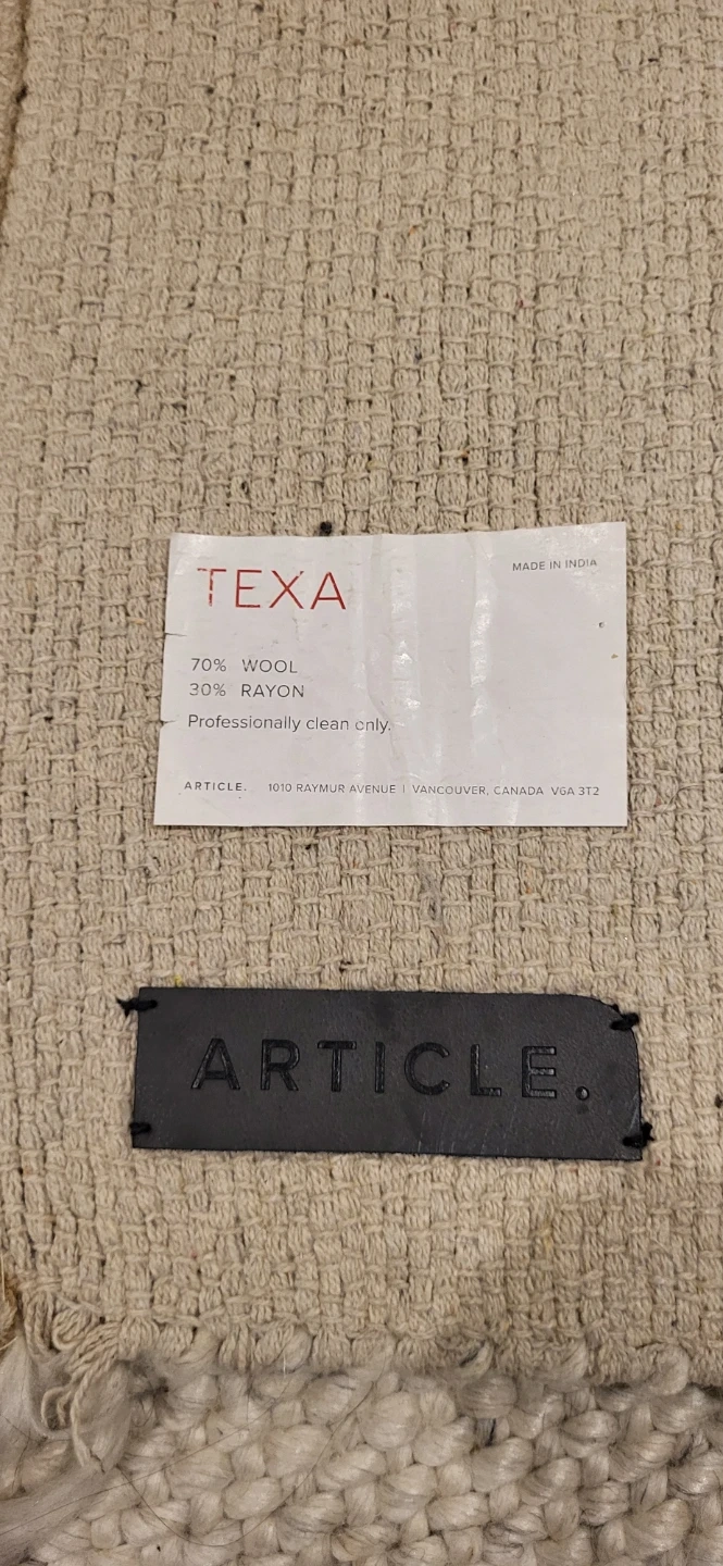 Selling an Article Texa rug made in India. It's crafted from 70% wool and 30% rayon. It is professionally clean only and has some stains and a small hole.