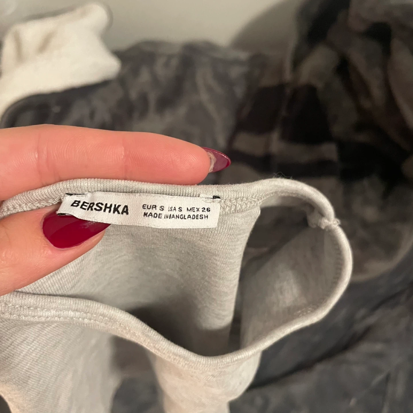 Selling a cropped Bershka grey t-shirt in size small! It's in great condition and ready for a new wardrobe