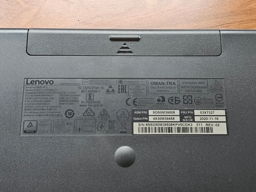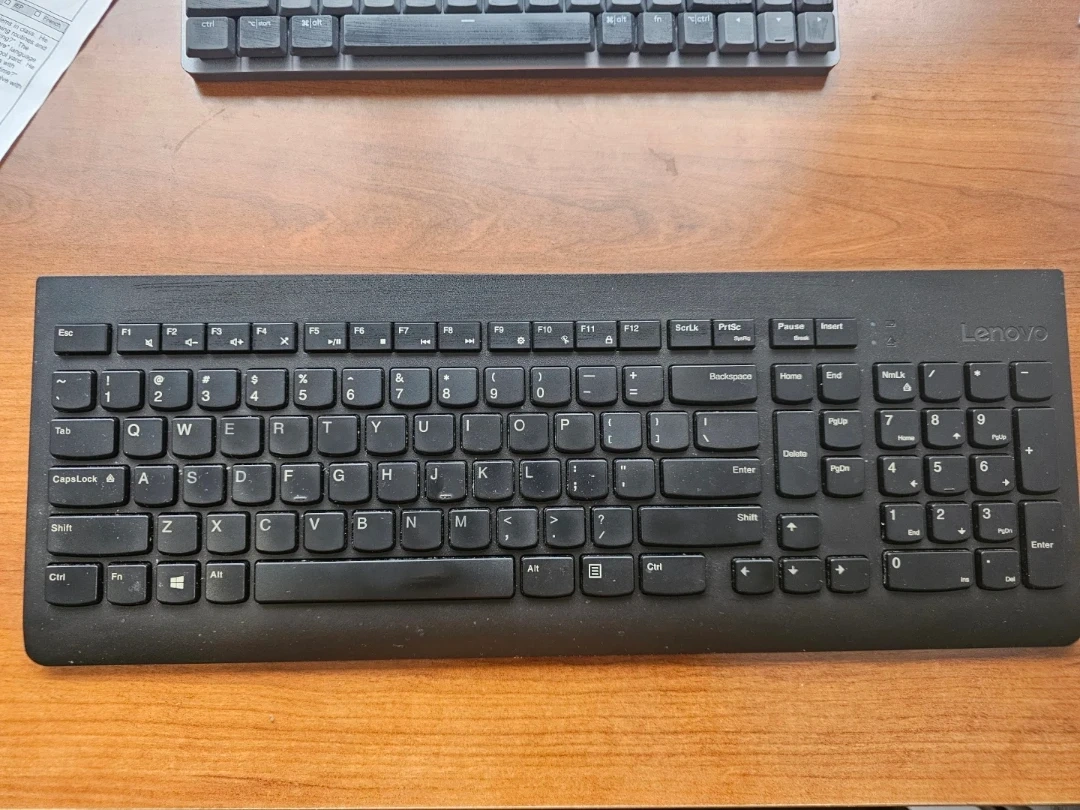 Selling a Lenovo wireless keyboard, model number KU-0977, in black. It's in good working condition and ready for a new setup.