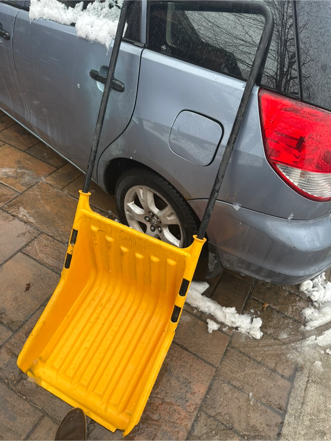 Selling a yellow snow shovel, perfect for clearing your driveway or walkway this winter! It's in good condition and ready to help you tackle the snow