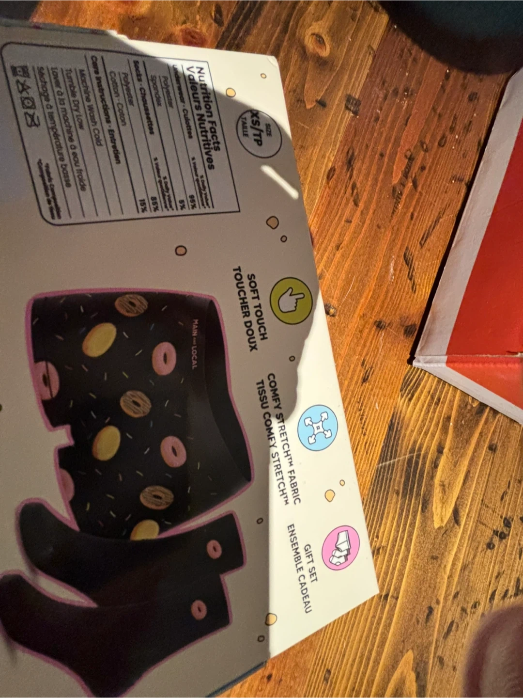 Selling a Donut underwear and sock gift set in size XS/TP. The set features a soft touch and comfy stretch fabric. It's a cute and fun gift idea!