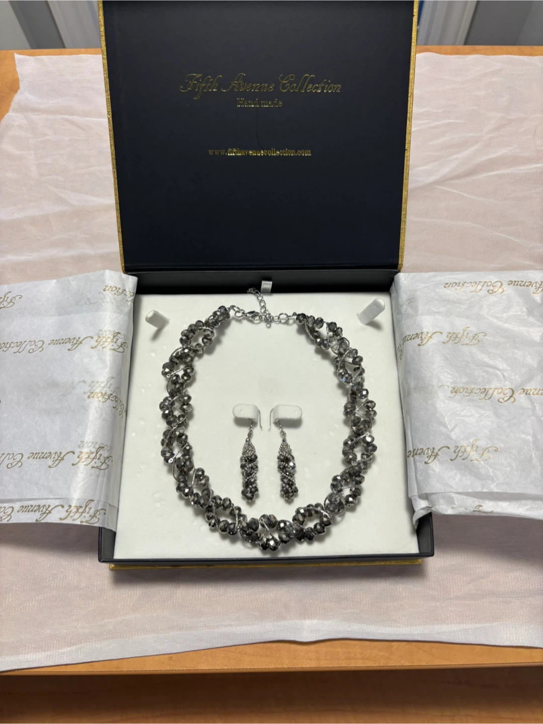 Selling a beautiful necklace and earrings set from Fifth Avenue Collection! The set is in excellent condition and comes in its original box. Perfect for adding a touch of elegance to any outfit