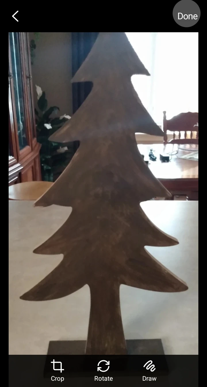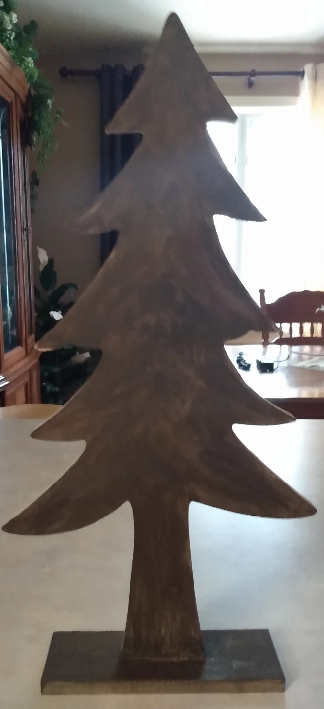 This is a wooden Christmas tree decoration, perfect for adding a rustic touch to your holiday decor. It's in great condition and ready to bring some festive cheer to your home!
