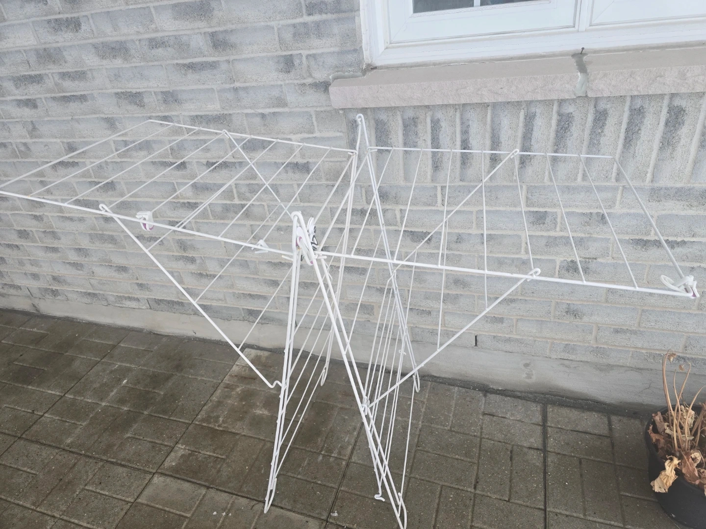 Selling a white folding clothes drying rack. It's in great condition and perfect for saving space when not in use! Ideal for apartments or small laundry rooms