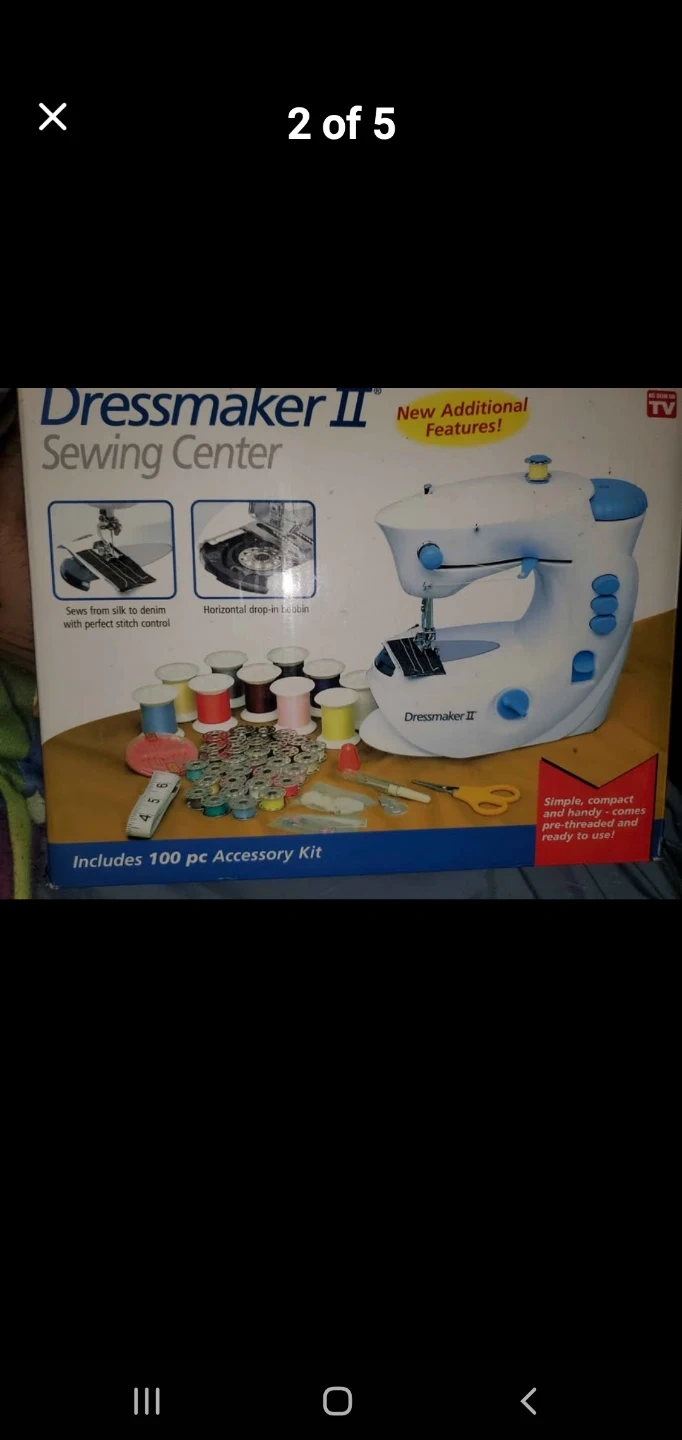 I'm selling a Dressmaker II Sewing Center! It includes a 100 pc accessory kit. It's simple, compact, pre-threaded, and ready to use. The box is included!