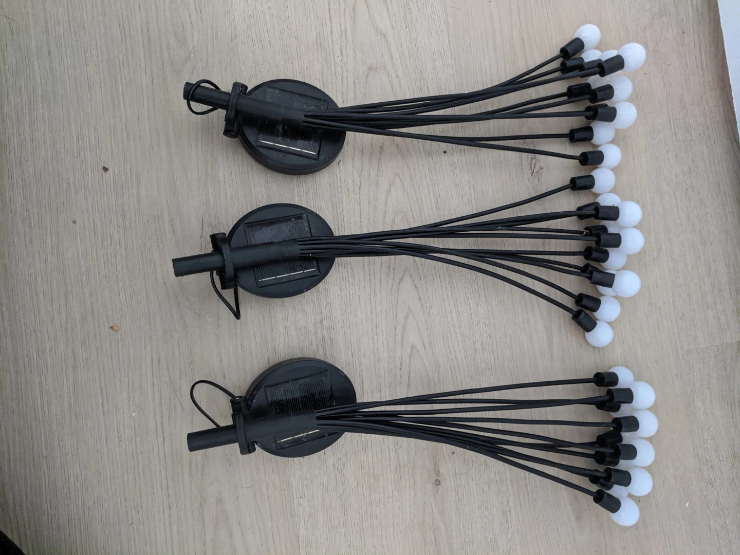 Selling a set of 3 solar-powered firefly lights. They're in good condition and ready to add a bit of magic to your garden or outdoor space! They need batteries.