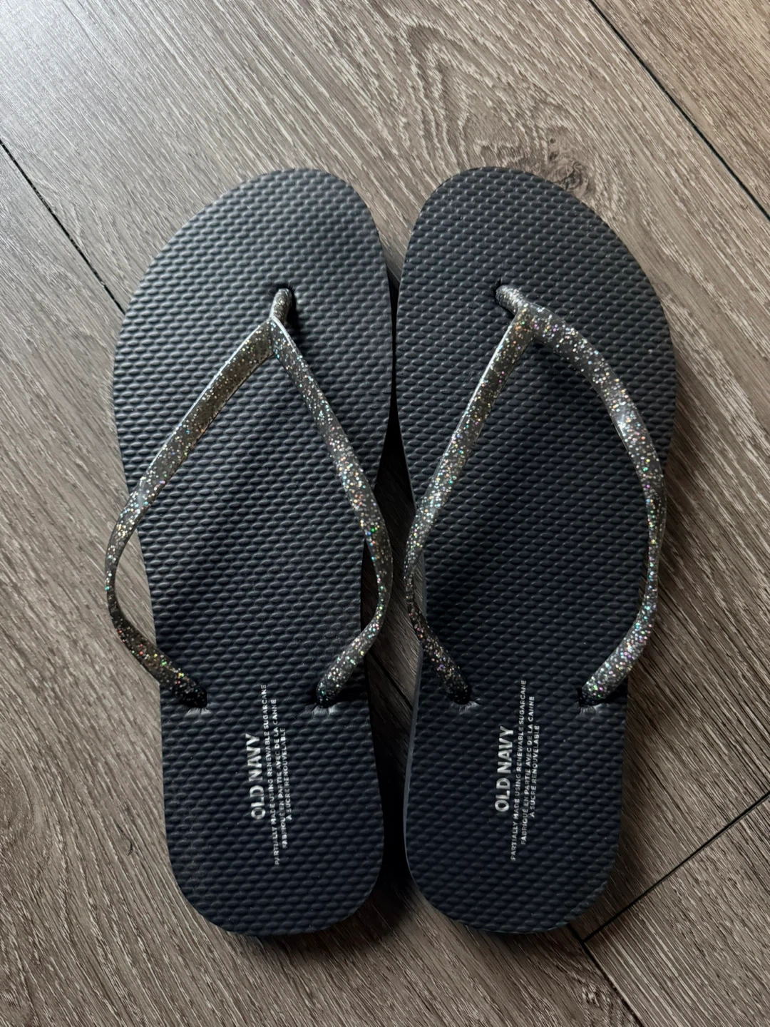Old Navy Black Glitter Flip Flops