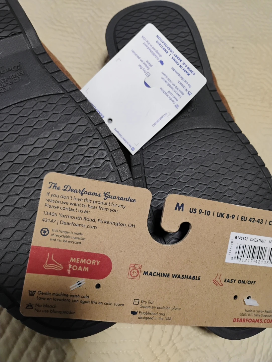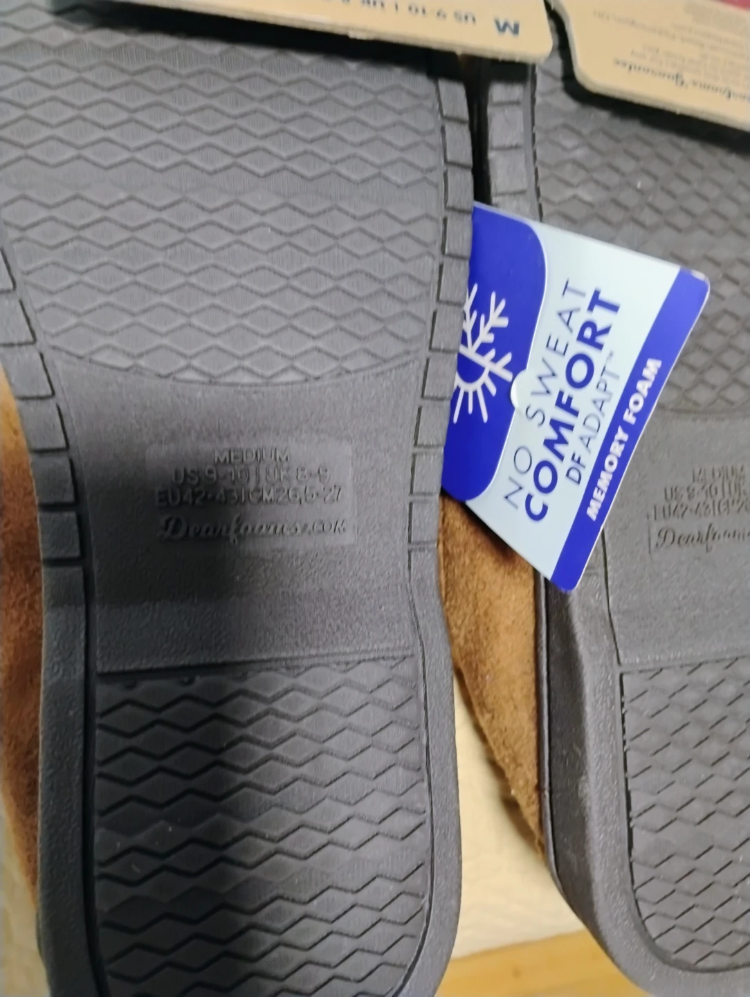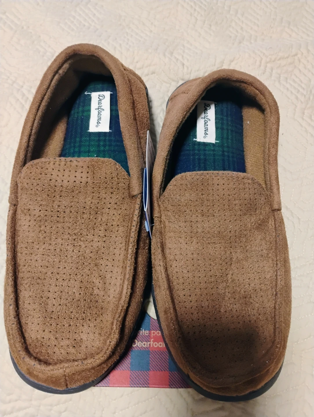 These Dearfoams men's slippers are brand new with tags & make a great gift. They are a size medium, fits men 9-10 and are in a chestnut brown color. The slippers feature memory foam for extra comfort and are machine washable. Okay to use outdoors too. From a smoke & pet free home. Pickup is in Maspeth Queens, blocks from Long Island Expwy. Pickup as a birthday or save as a Christmas gift.