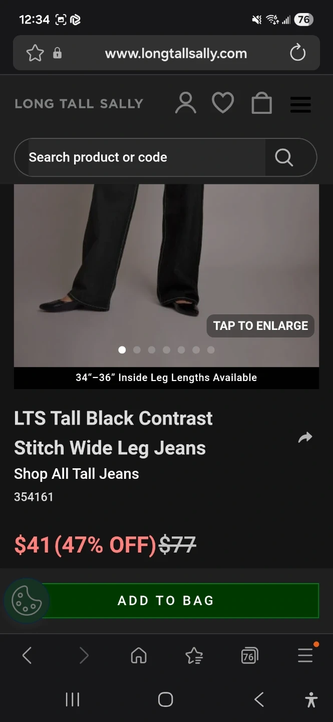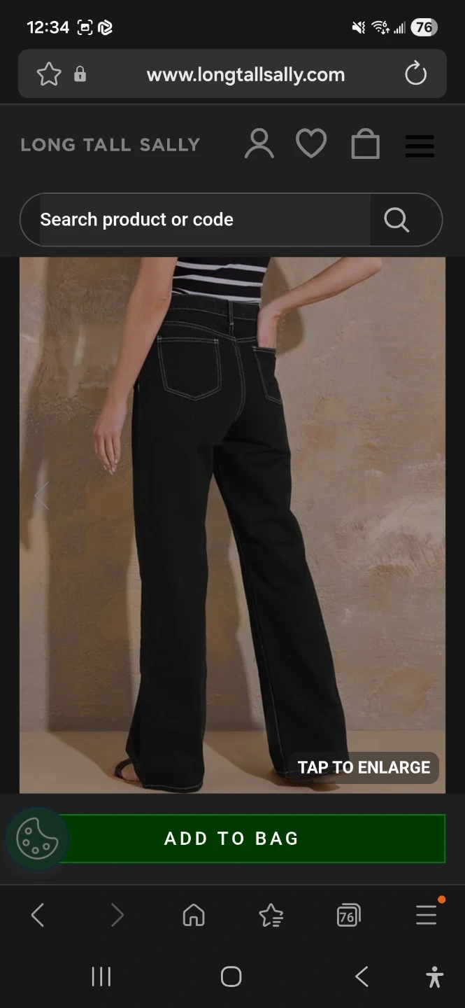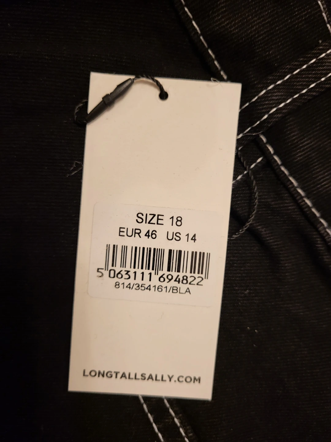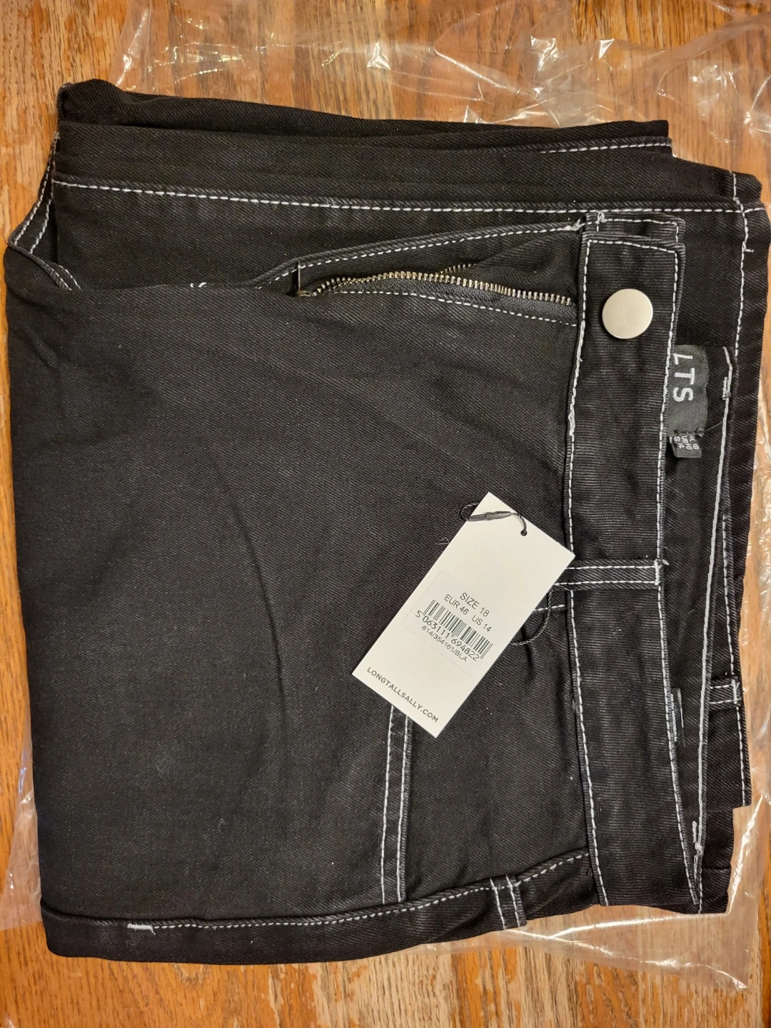 These are a pair of Long Tall Sally black wide leg jeans with contrast stitching! They are a US size 14 and have a 34" inside leg length. Perfect for adding a stylish touch to your wardrobe!