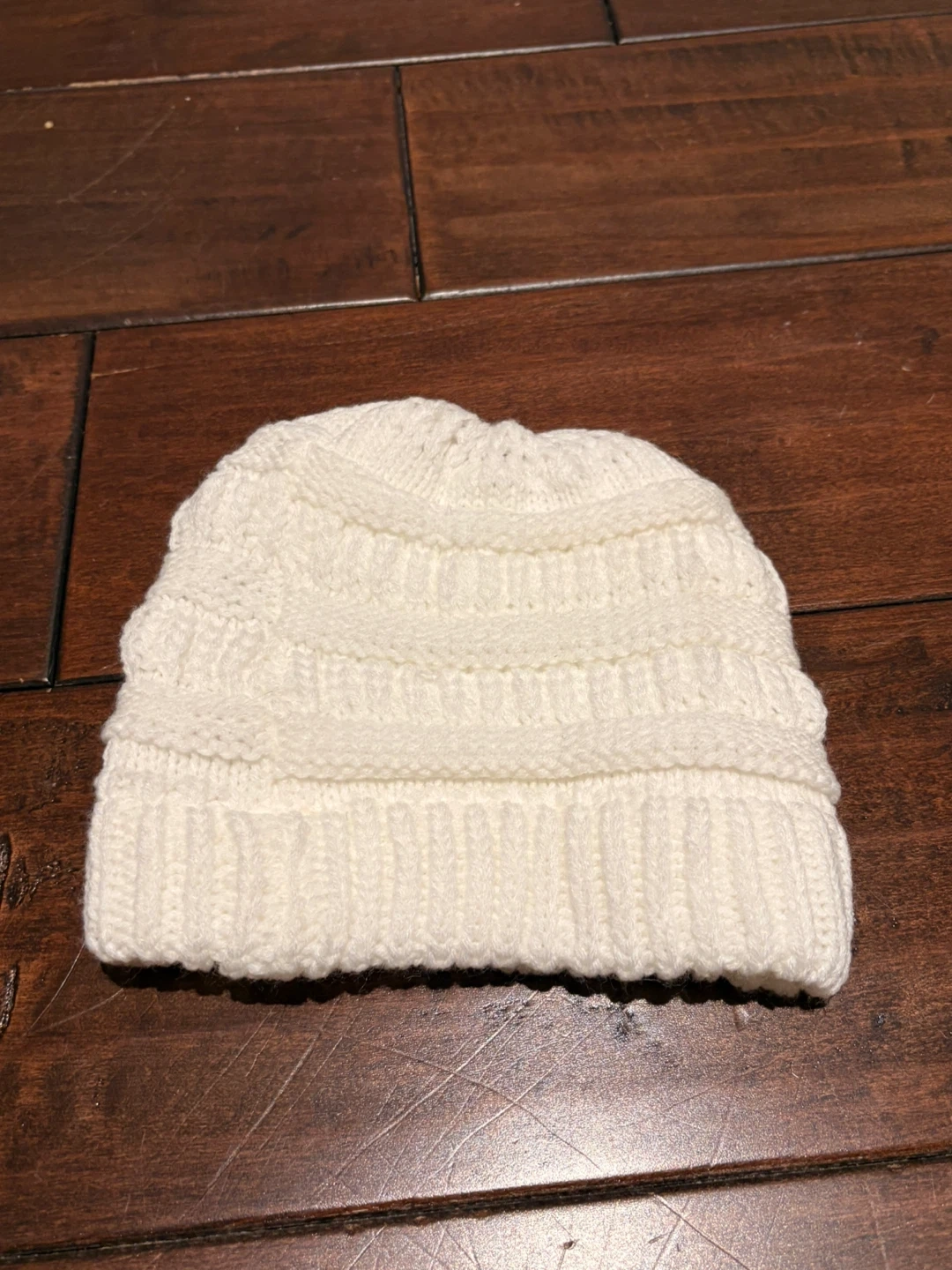 Selling a variety of knit beanies in different colours! There's blue with grey stripes, a fluffy white one, a plain grey, a textured white, and a purple beanie. All in great condition and ready to keep you warm during the colder months!