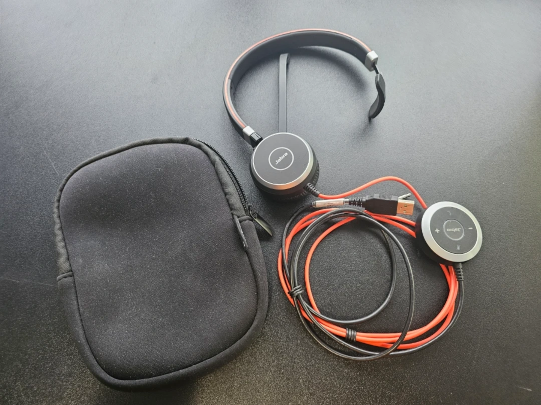 Selling a Jabra Evolve 65 MS headset! It's in great condition and comes with its original case. Perfect for work or study, it provides clear audio and comfortable wear.