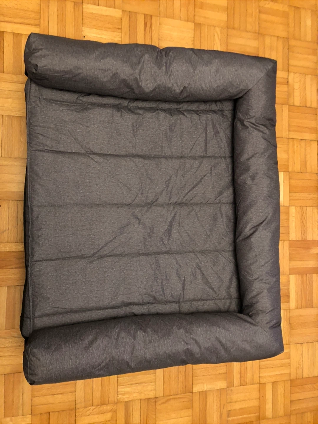 Selling a Veehoo elevated dog bed in grey. It's in great condition and provides a comfy place for your furry friend to rest. The bed is elevated to keep your dog cool and comfortable, and it's easy to clean. The height is approximately 8 inches.
