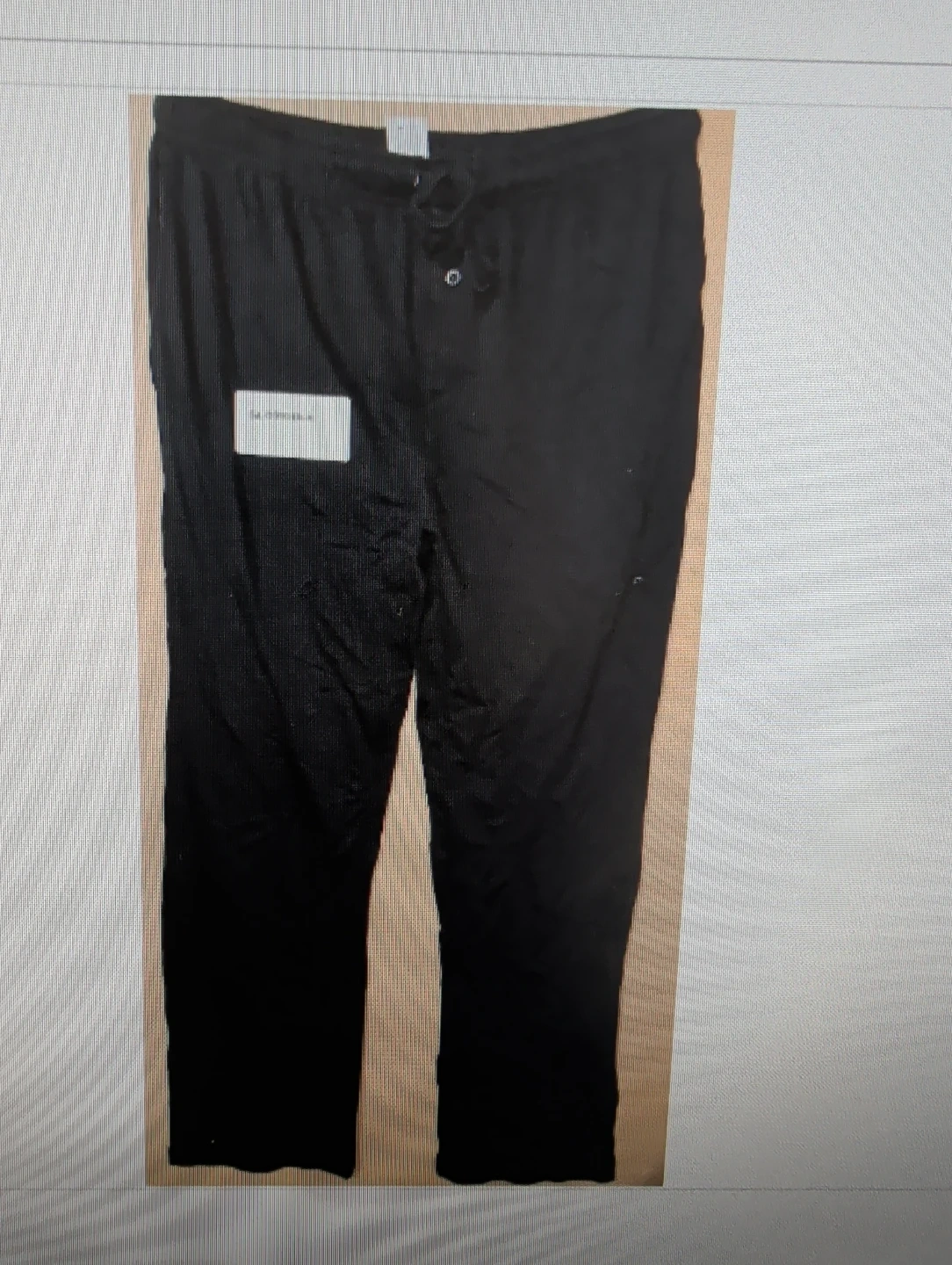 Unisex Black pajama pants with a drawstring and button fly. Comfortable for lounging at home. These pants are made from a soft fabric.