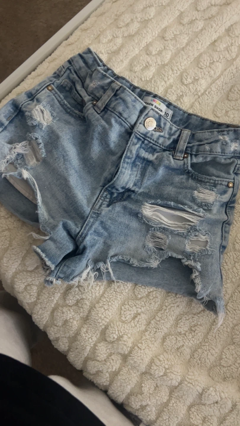 Selling a pair of urban beach shorts in a size 10 (140 cm) IN KIDS!!They're a light wash denim with a distressed look. Perfect for a casual summer day!