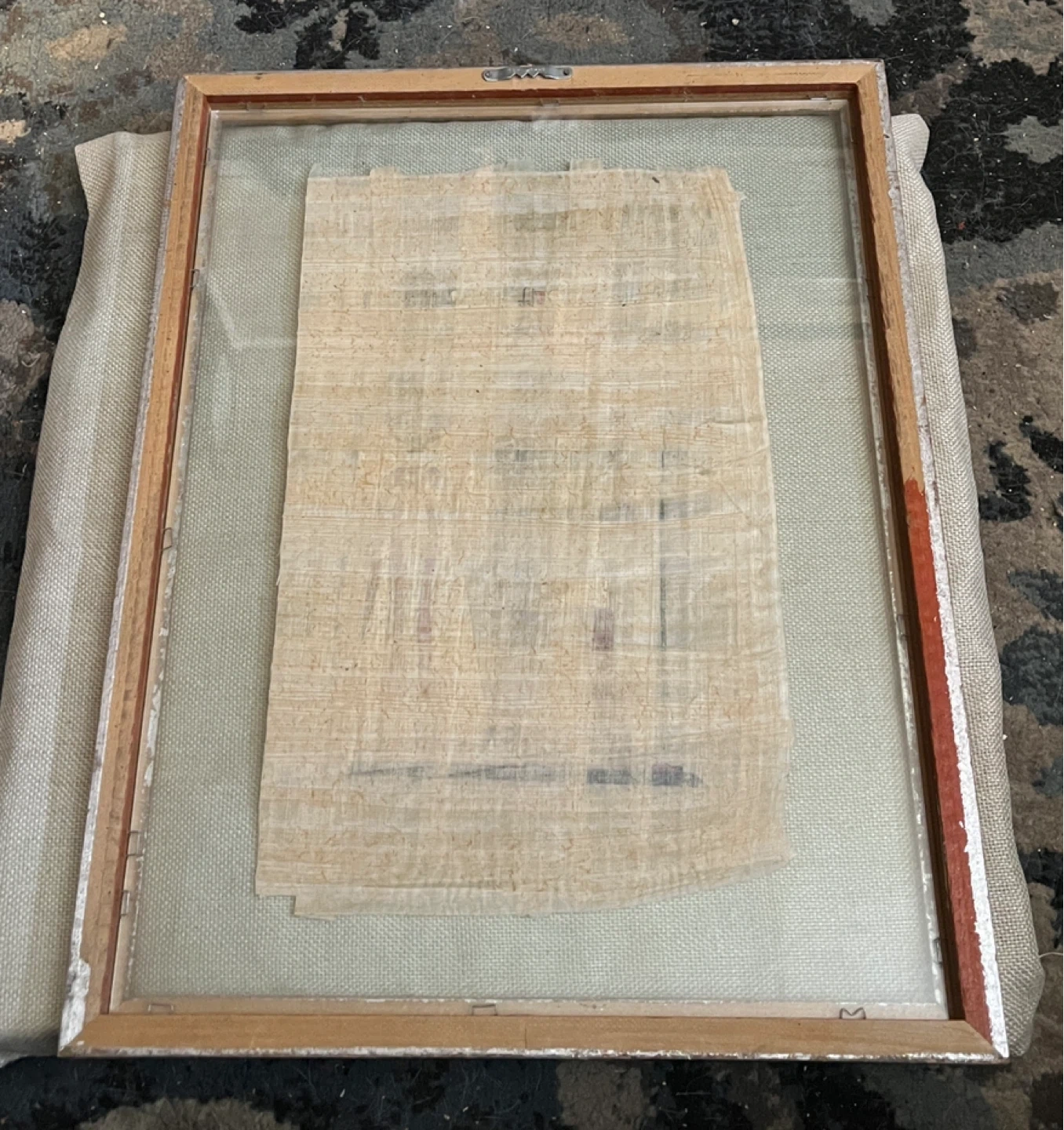 Selling a framed piece of Egyptian papyrus art. It's a unique piece with vibrant colours and hieroglyphics. The frame is 12” x 16” and complements the artwork nicely. Perfect for adding a touch of ancient history to your home decor!