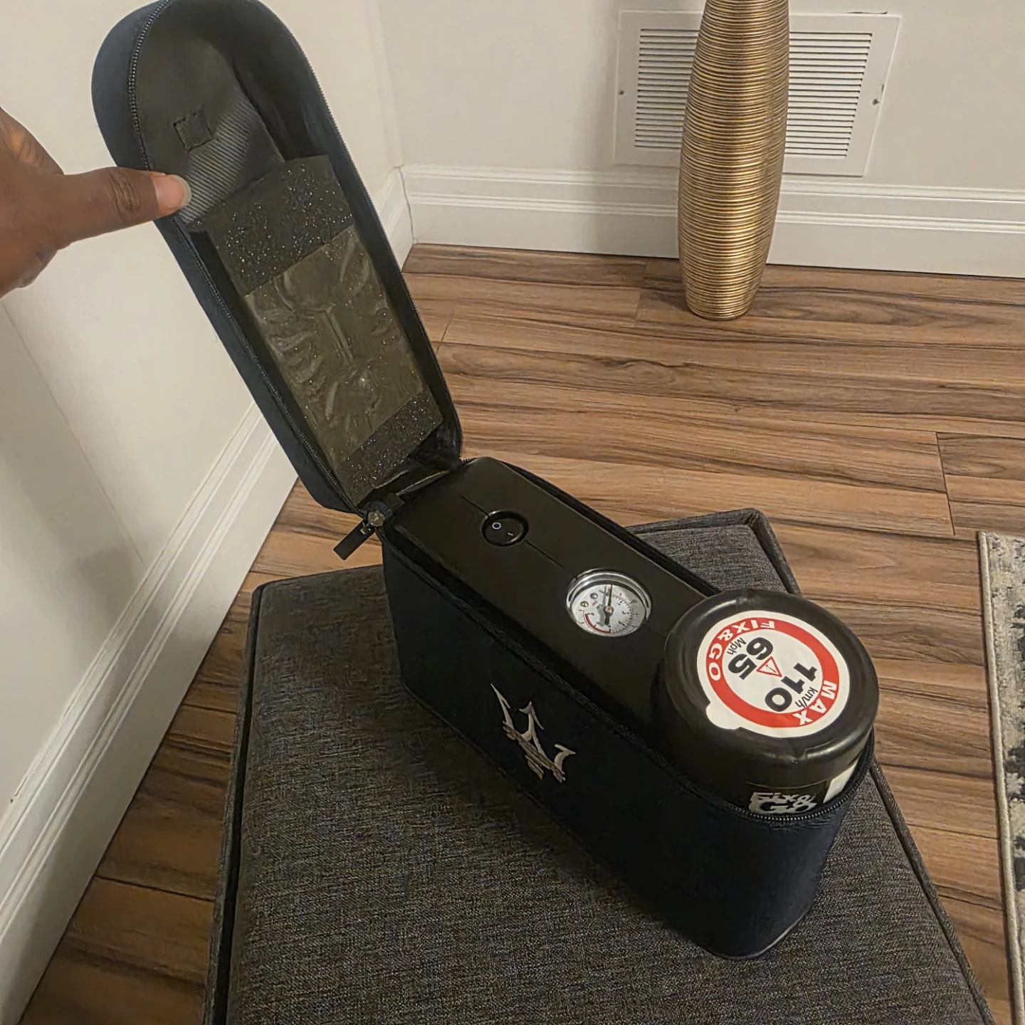 Selling a Maserati tire inflator kit, complete with Fix-A-Go! This handy kit comes in a sleek carrying case, perfect for keeping in your car for emergencies. It looks like it's in great condition and ready to go!