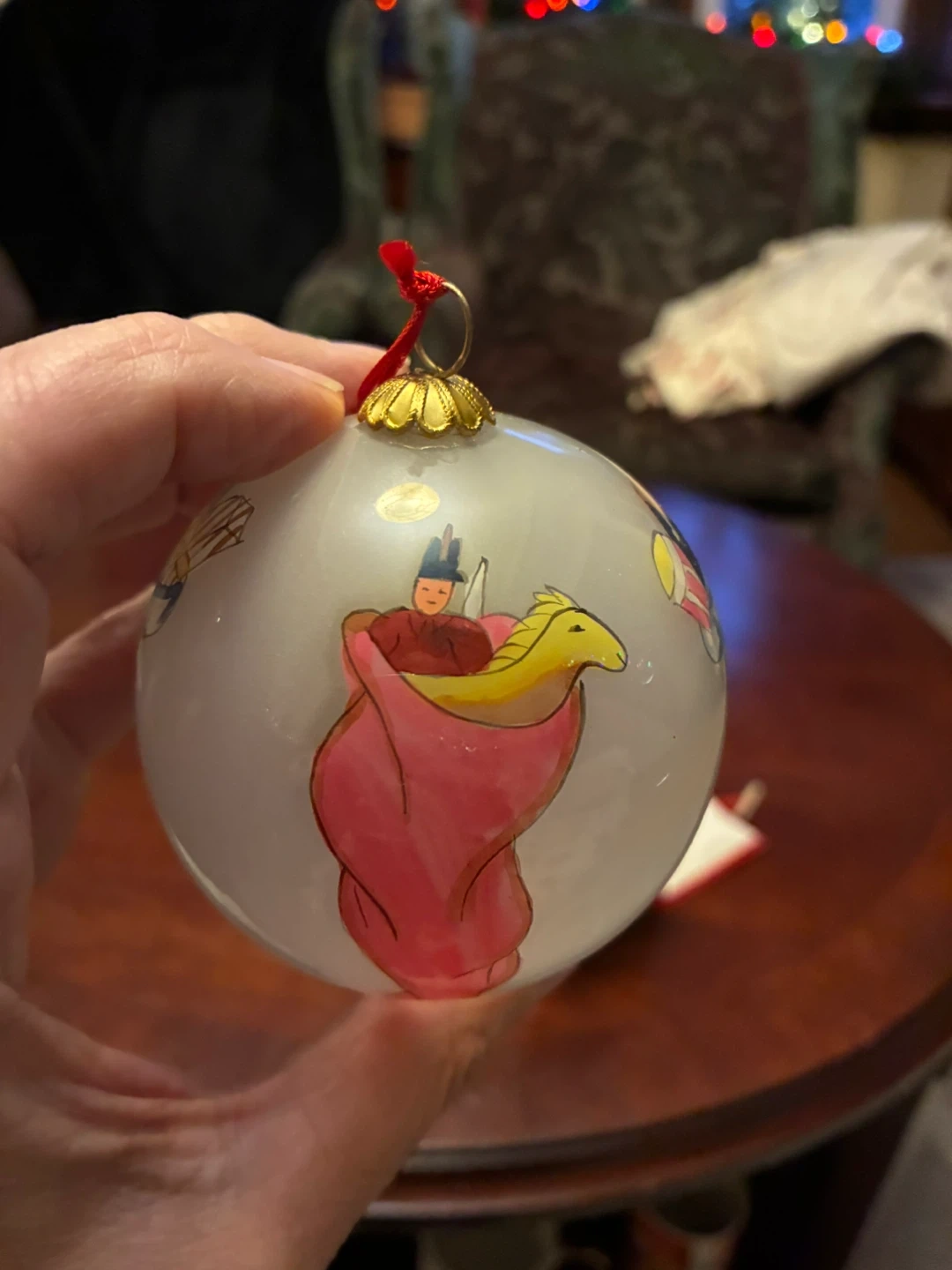 Add a touch of vintage to your Christmas tree with this beautiful hand-painted Li Bien glass ornament