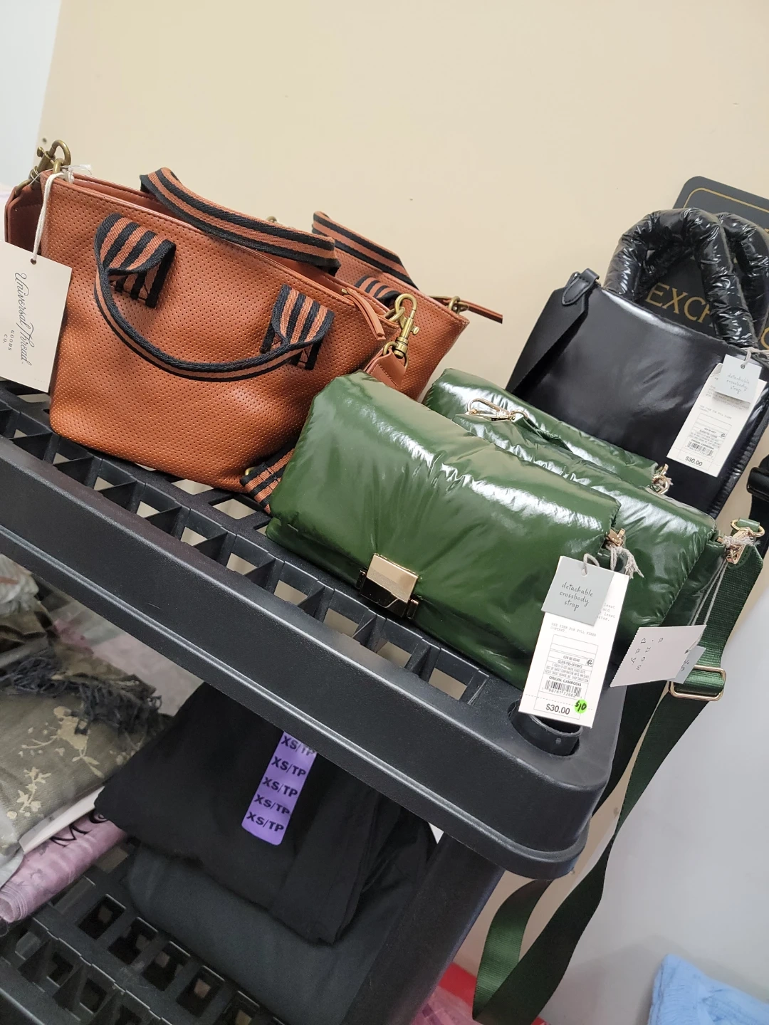 A collection of various purses and handbags available. Great for adding a stylish touch to any outfit!