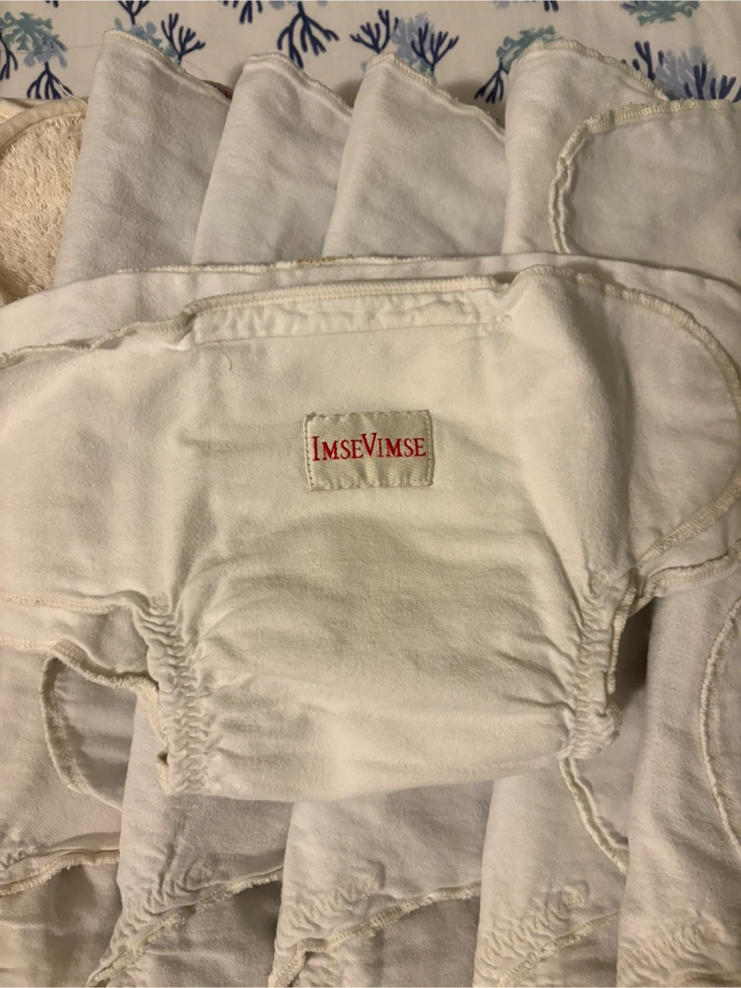 I'm selling a set of Imse Vimse diapers. They are XLarge size, suitable for 11-14kg babies. Made from 100% organic cotton.