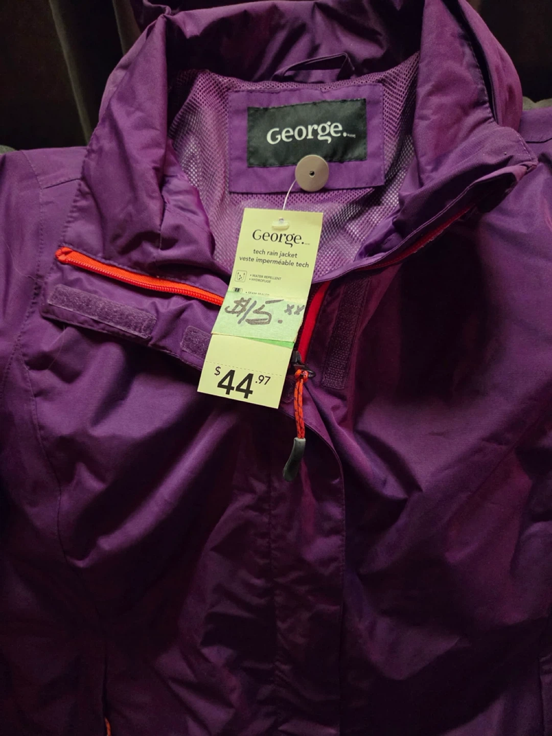 Selling a George tech rain jacket in a lovely purple colour! The tag shows that it was originally $44.97. Perfect for those rainy days!