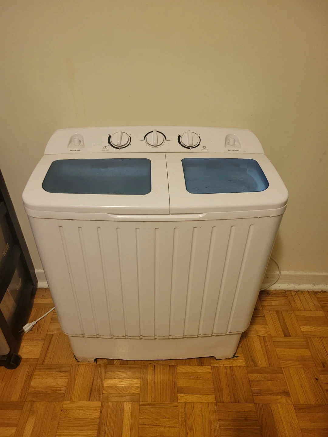 GIVING AWAY a portable washing machine! It's works well, it just needs a little clean. It comes with all the necessary accessories, including the hoses, replacement parts and hangers. Giving away since we're moving to a place with laundry and need gone ASAP.