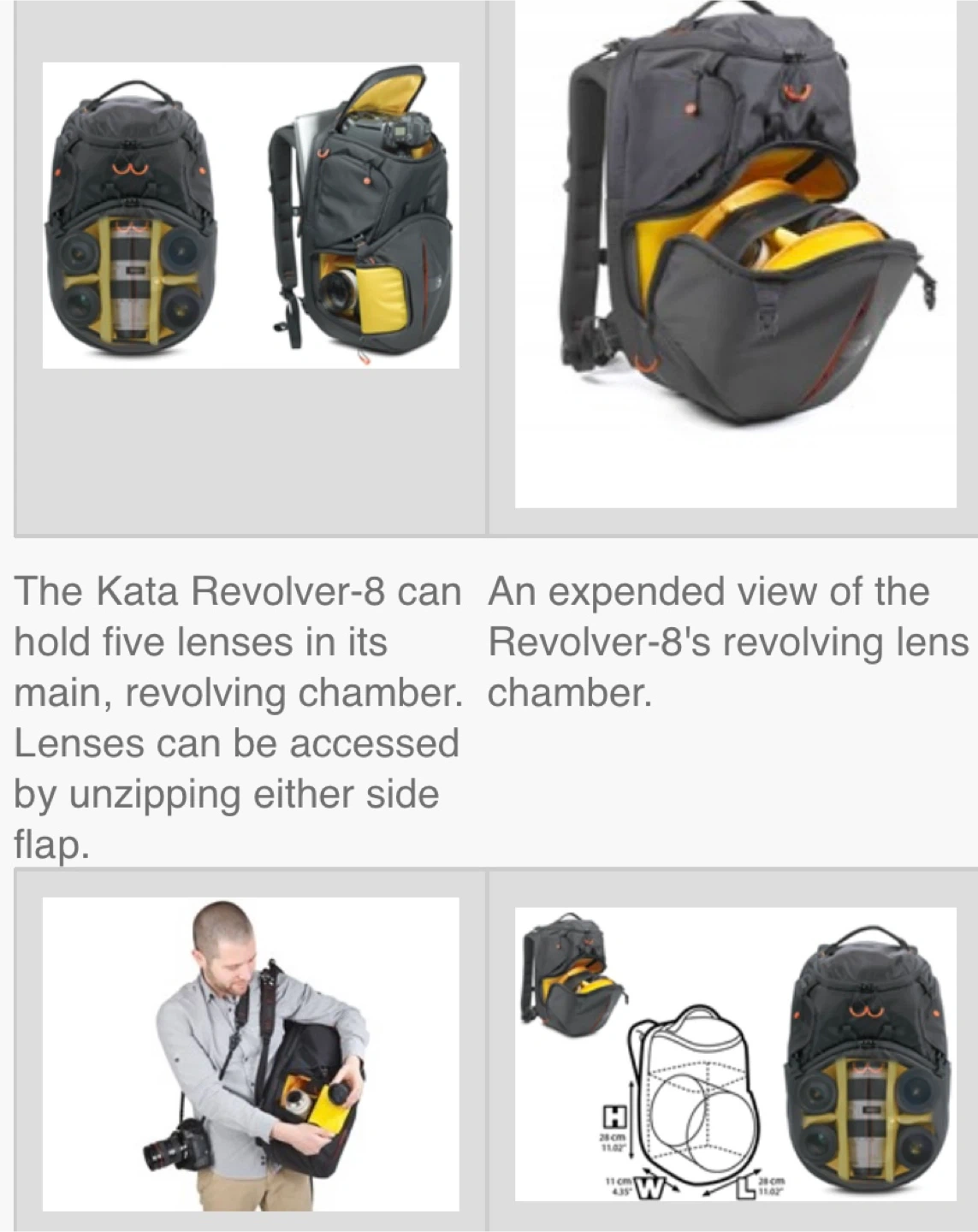 New Kata Revolver-8 PL camera backpack, crafted from durable ripstop nylon with exterior dimensions of 9.8 x 19.3 x 13.0 inches, ideal for carrying all your photography essentials. This backpack includes straps for a tripod, a waist belt for added support, and a dedicated laptop compartment, making it perfect for photographers on the go. It is in good condition. Here are some of its features: * Material: Ripstop nylon * Exterior Dimensions: 9.8 x 19.3 x 13.0 inches (24.9 x 49.0 x 33.0 cm) * Interior Dimensions: 4.3 x 11.0 x 11.0 inches (10.9 x 27.9 x 27.9 cm) * Laptop Compartment: 1.2 x 15.0 x 11.0 inches (3.0 x 38.1 x 27.9 cm) * Tripod Holder: Yes, with included straps * Waist Belt: Yes * Weight: Max 3.6 lb (1.6 kg, with dividers) / Min: 2.9 lb (1.3 kg, without dividers) New without tags Pickup can be arranged in Brampton, Mississauga, Oakville, Burlington, Hamilton